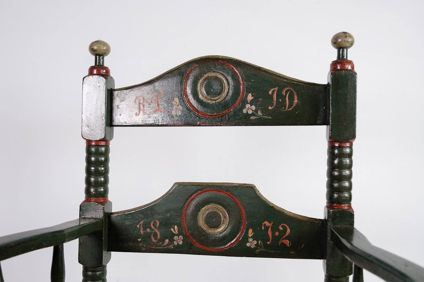 Antik bondestol med original bemaling oprindeligt fra Norge år 1832