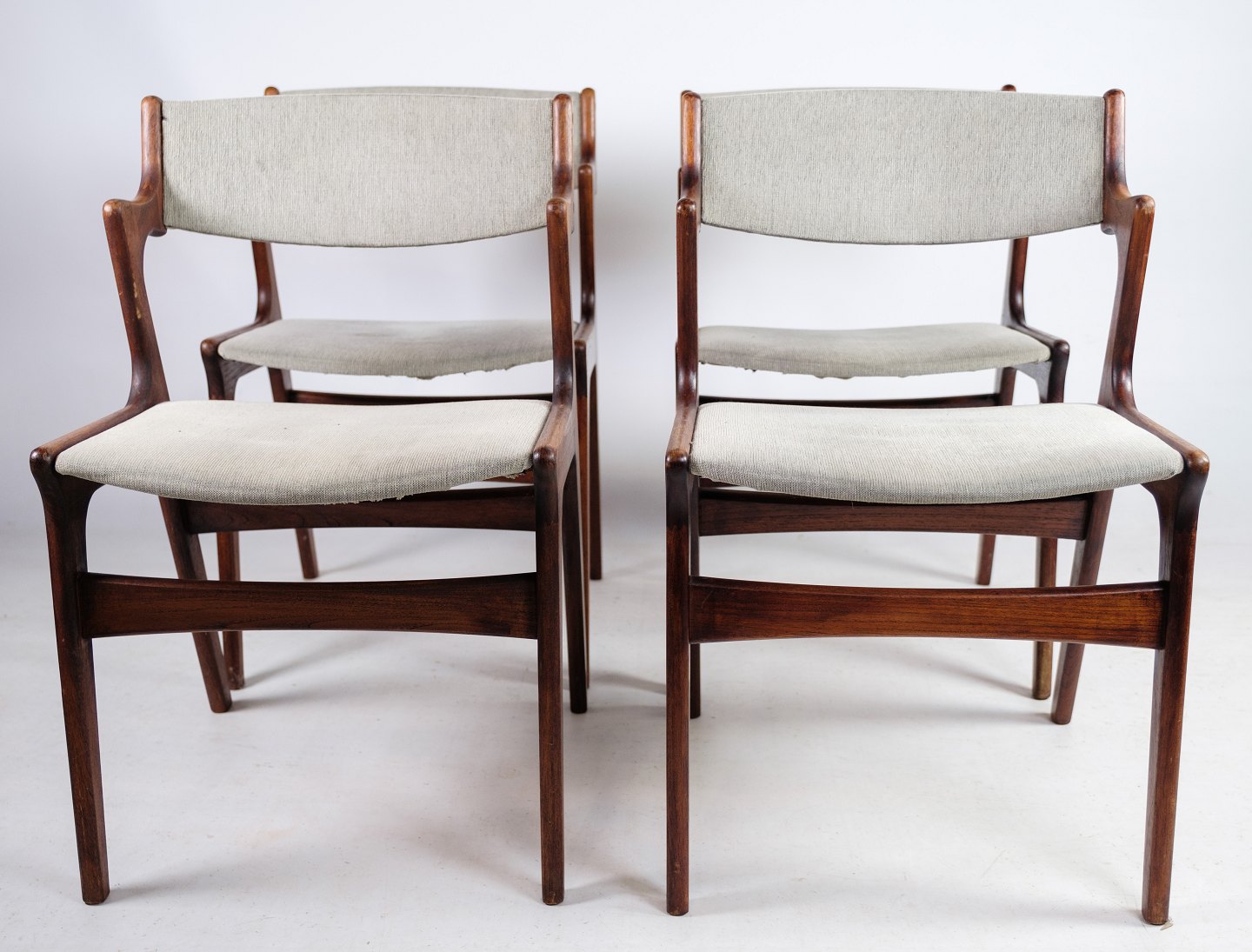 SoldSet of 4 armchairs in teak wood, designed by Nova furniture from around the 1960s. The chairs are made of nice gray fabric in very fine condition.