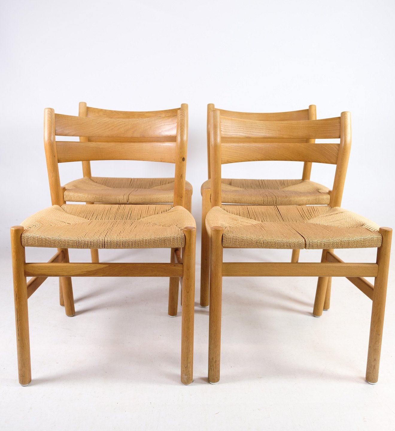 SoldSet of four dining room chairs, model BM1, in oak and wicker designed by Børge Mogensen from the 1960s. The chairs are in good used condition.