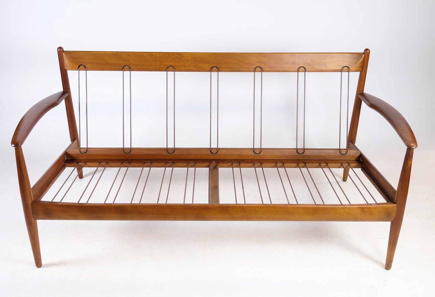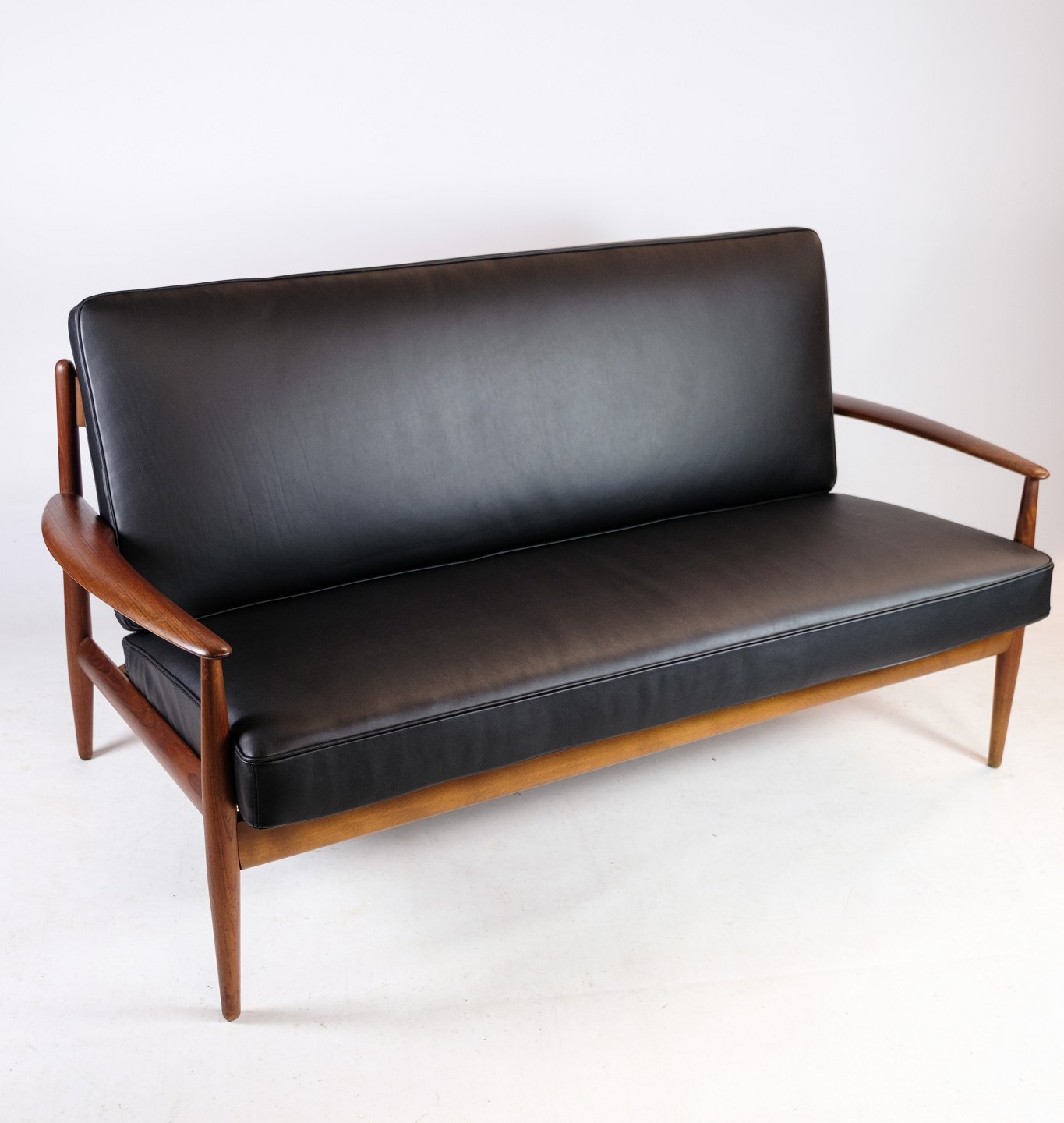 Please contact us for price informationThis 2-seater sofa from around the 1960s is a rare beauty designed by Grete Jalk and manufactured by France & Søn in Denmark. It is made of beautiful teak wood and has newly upholstered cushions in elegant leather of the finest quality. The teak frame of the sofa has been refurbished so that it is in excellent condition and is ready to adorn your home.