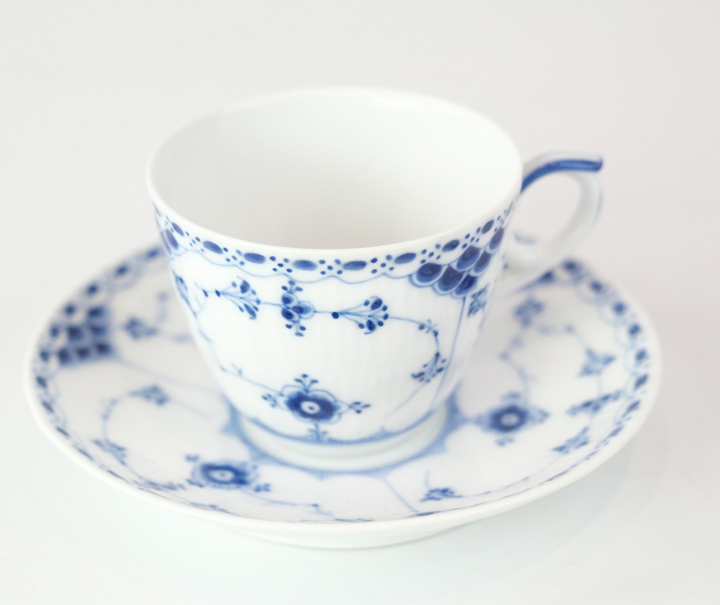 Mussel-painted half-blond cup with saucer from a royal porcelain factory.