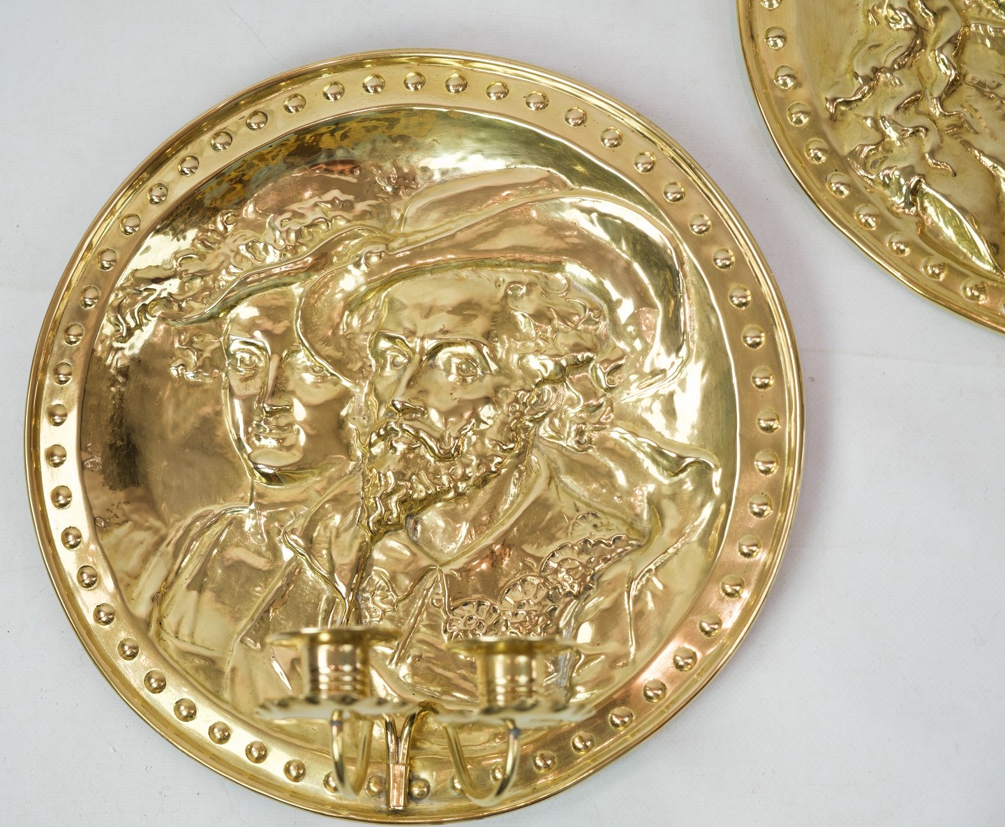 A pair of antique brass wall sconces from around the 1860s.