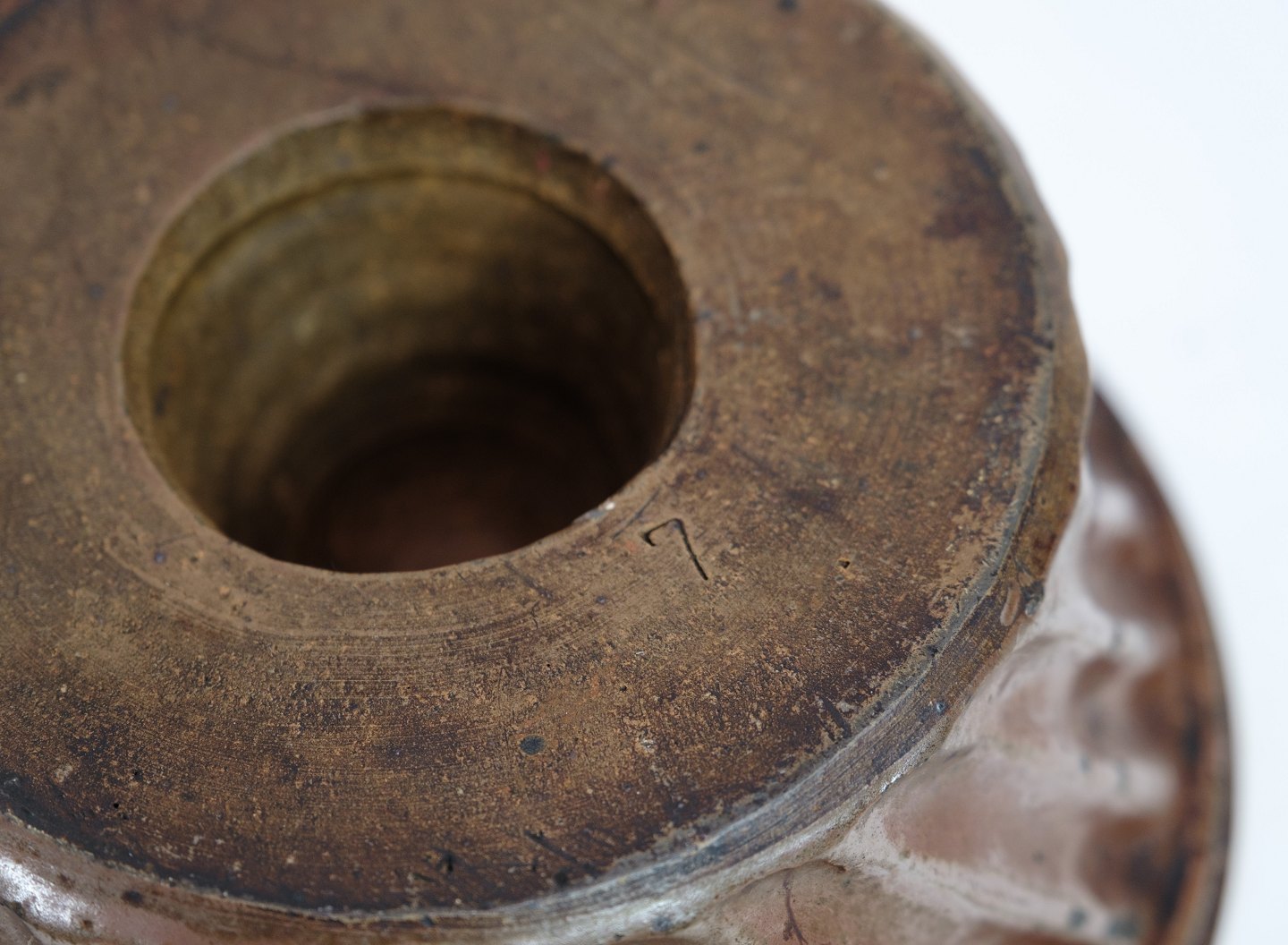 Earthenware pudding molds in brownish colors from around the 1930s.