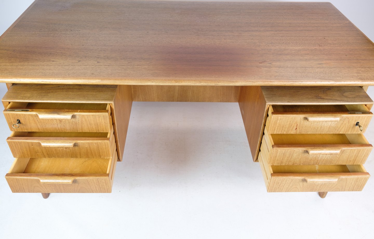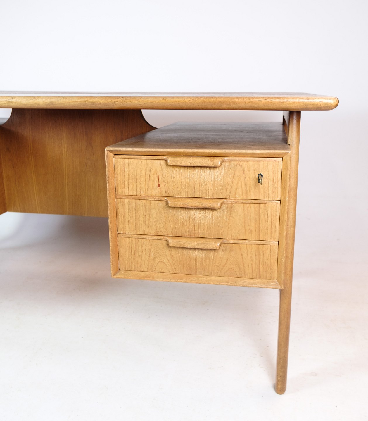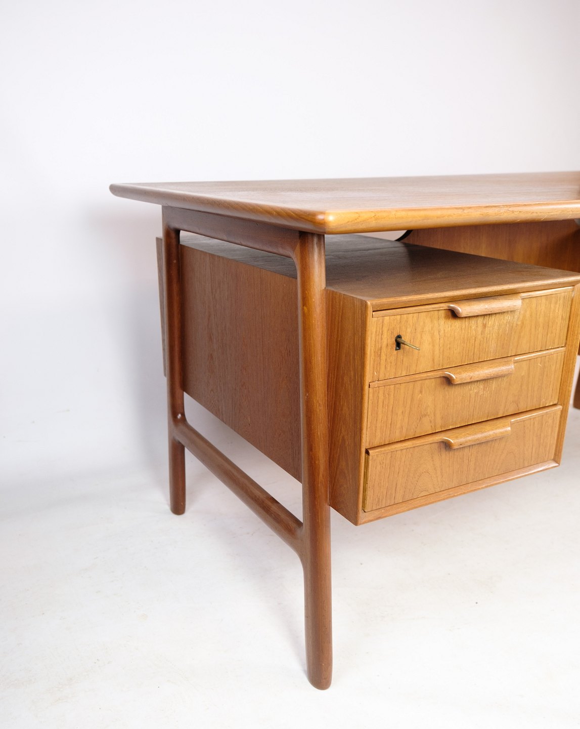 Skrivebordet model 75 er et godt eksempel på dansk møbeldesign fra 1960'erne. Det er stadig populært i dag på grund af dets tidløse design og holdbarhed. Lyst teaktræ er en smuk og holdbar træsort, der vil blive smukkere med tiden, og skrivebordet vil sandsynligvis blive et smukt og funktionelt møbel, der kan bruges i mange år fremover.