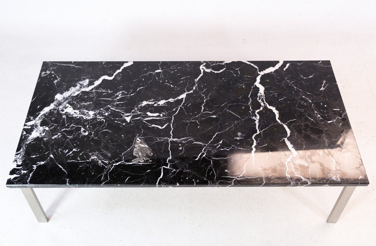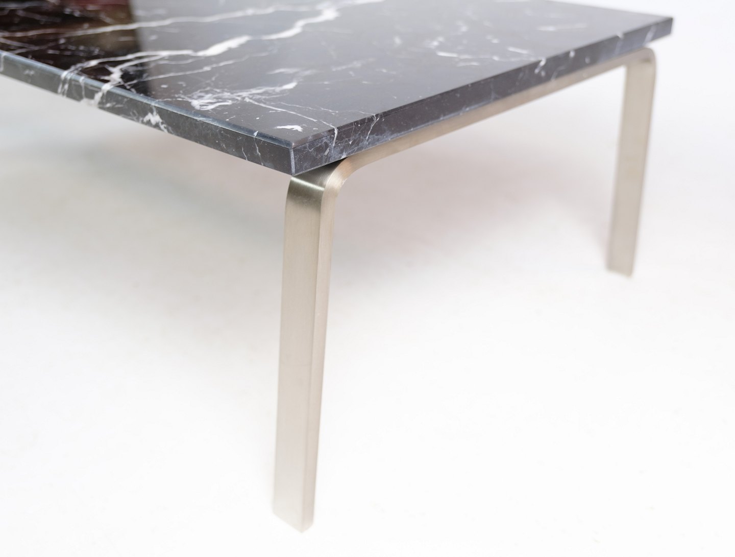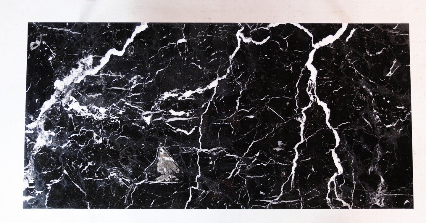 Sofabord, designet af Mann by Norr11 med stel af aluminium og plade af marmor af dansk design.
