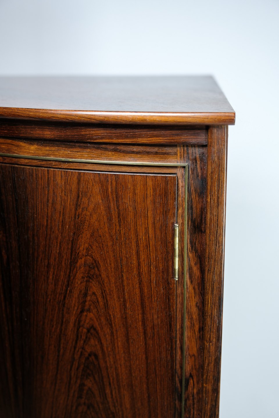 This rosewood corner cabinet from around the 1960s is a beautiful example of Danish furniture craftsmanship from the mid-20th century. The cabinet is designed with care and attention to detail and exudes elegance and timeless style.