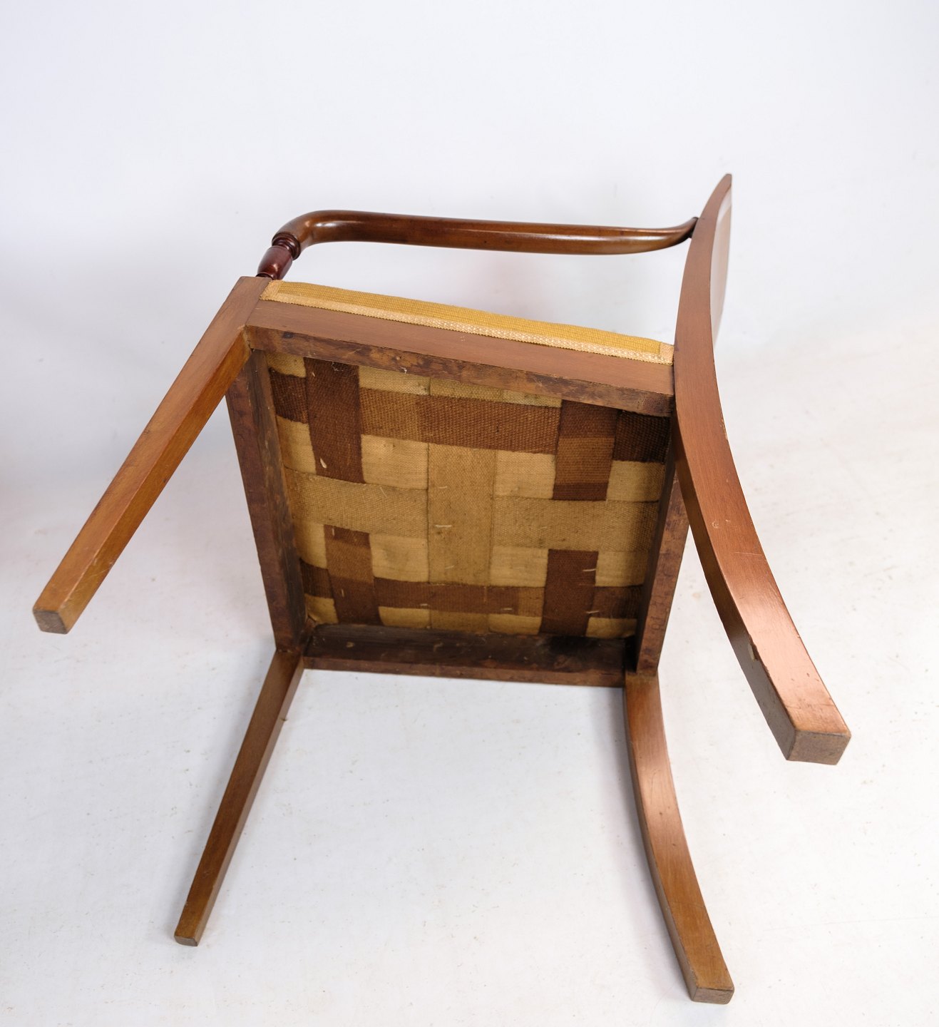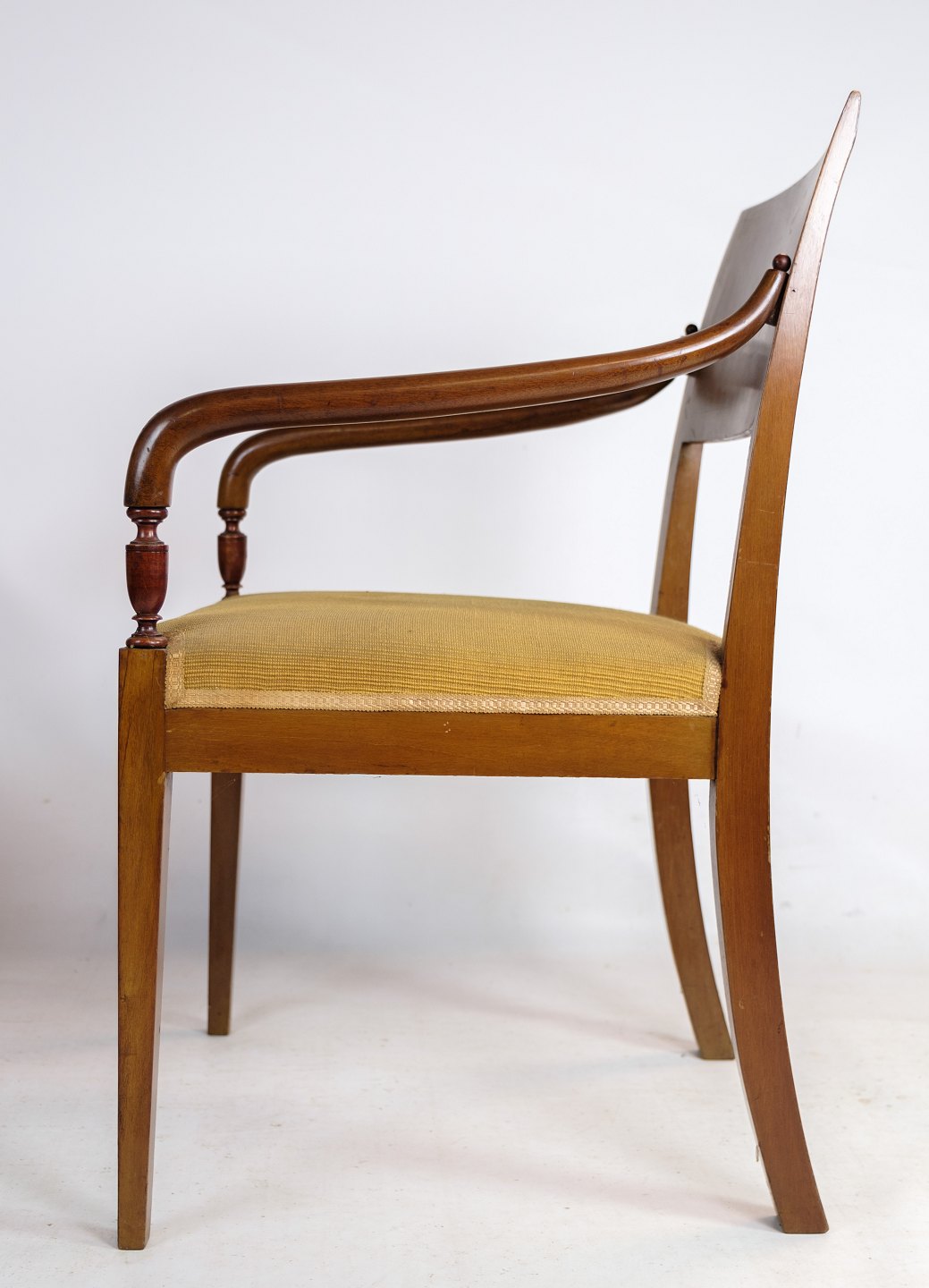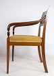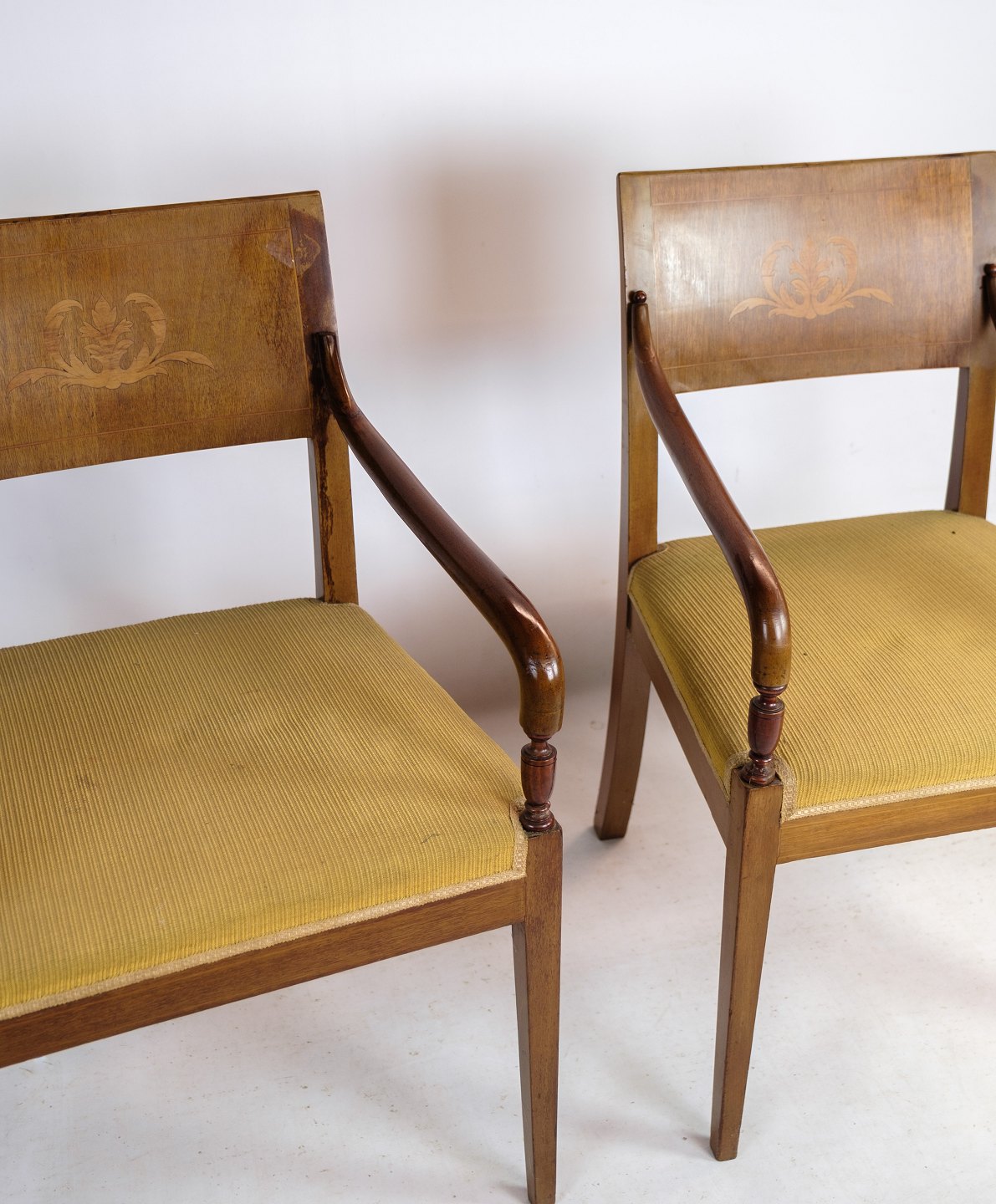 Et par armstole i håndpoleret mahogni af dansk empire stil med intarsia i ryggen af stolen fra omkring 1920'erne.
