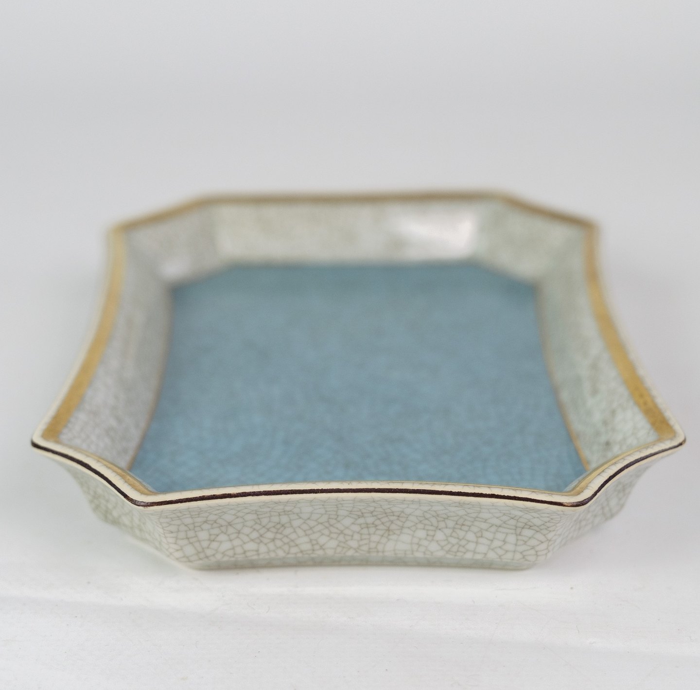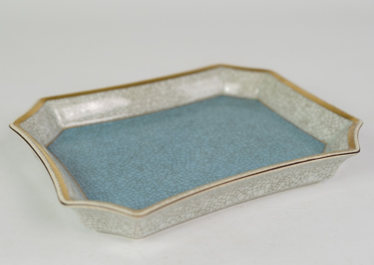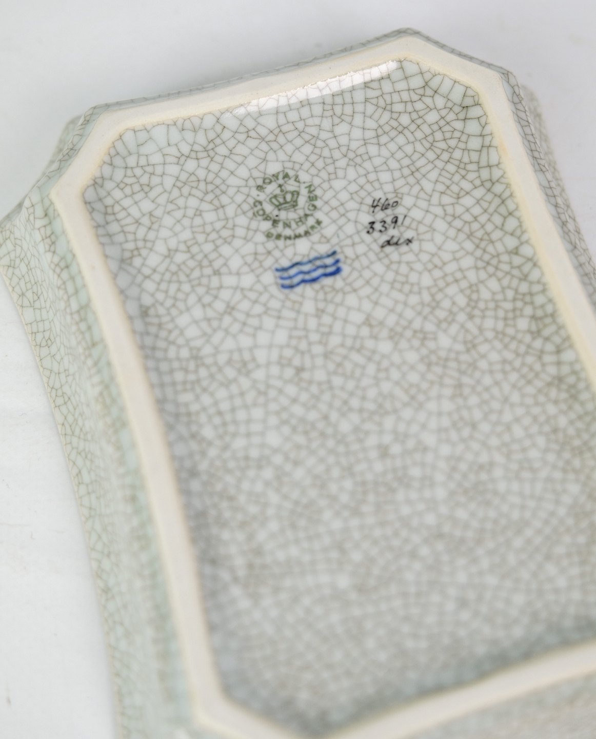 Hvid og Blåt Krakkele bakke med guldkant fra den Kongelig porcelæns fabrik nr. 460 / 339