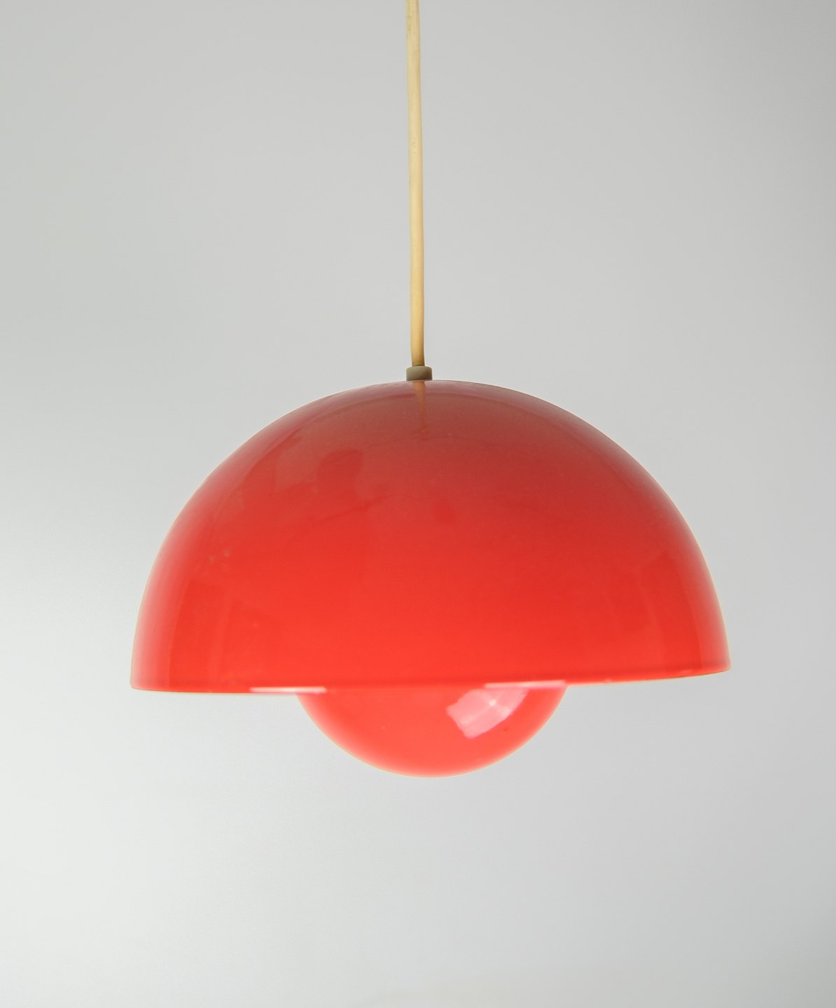 Flowerpot loftlampe, designet af Verner Panton (1926-1998) VP1 i orange farve fra 1970'erne