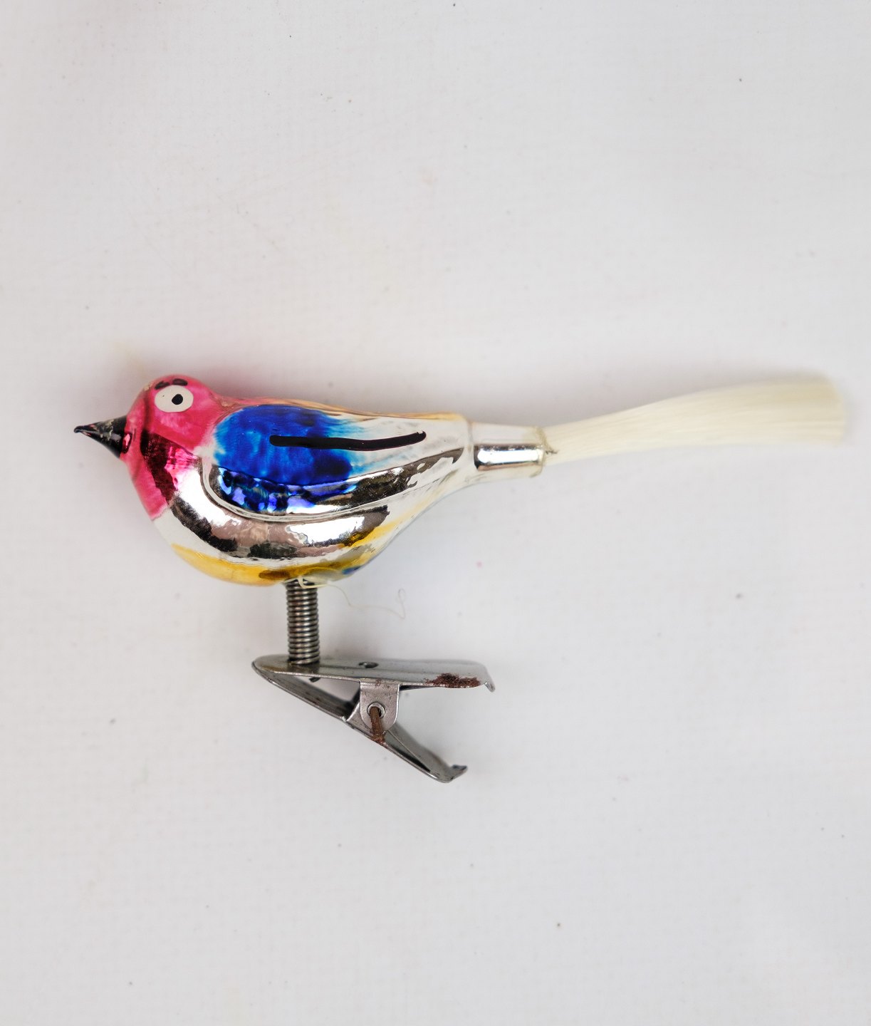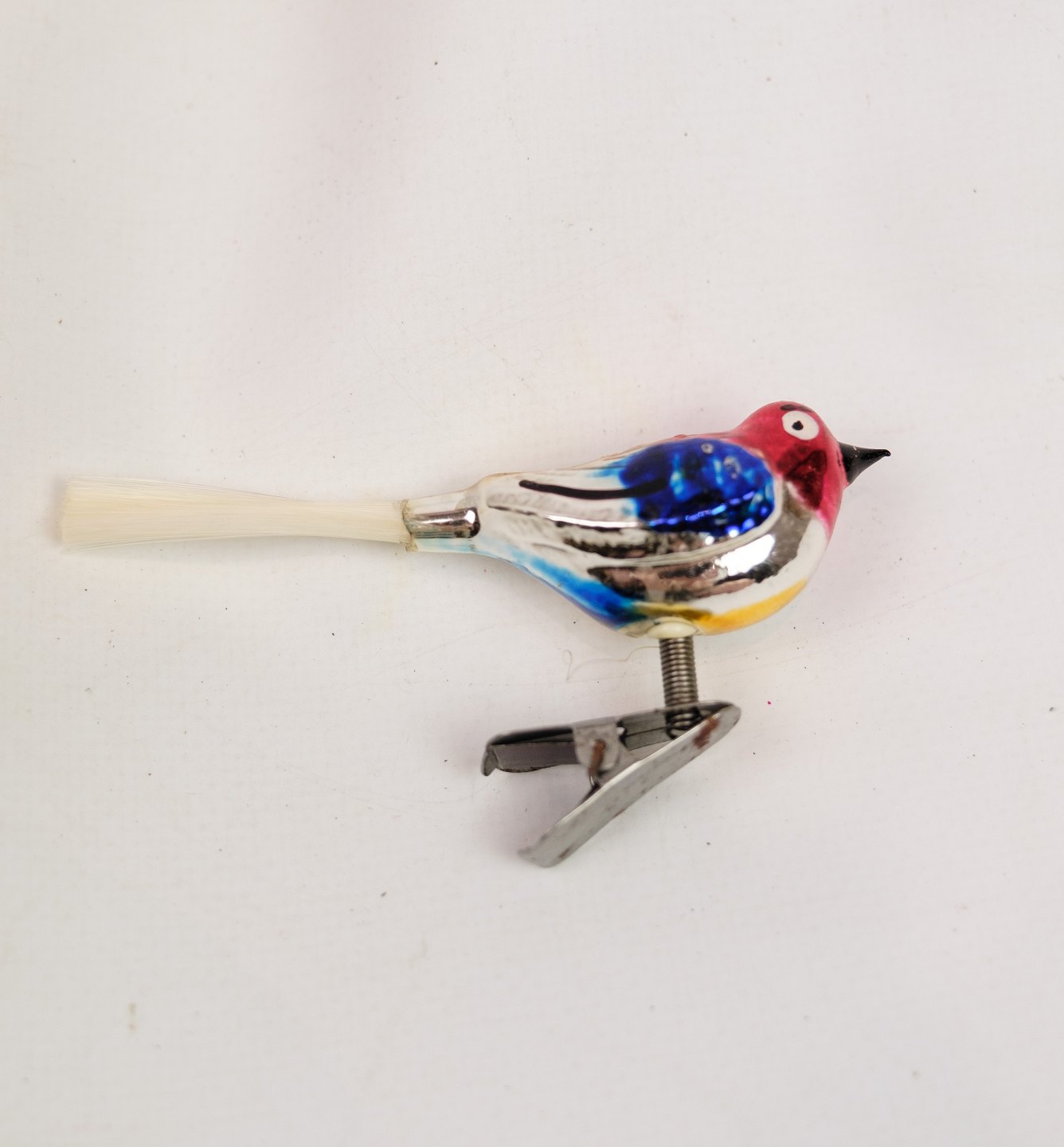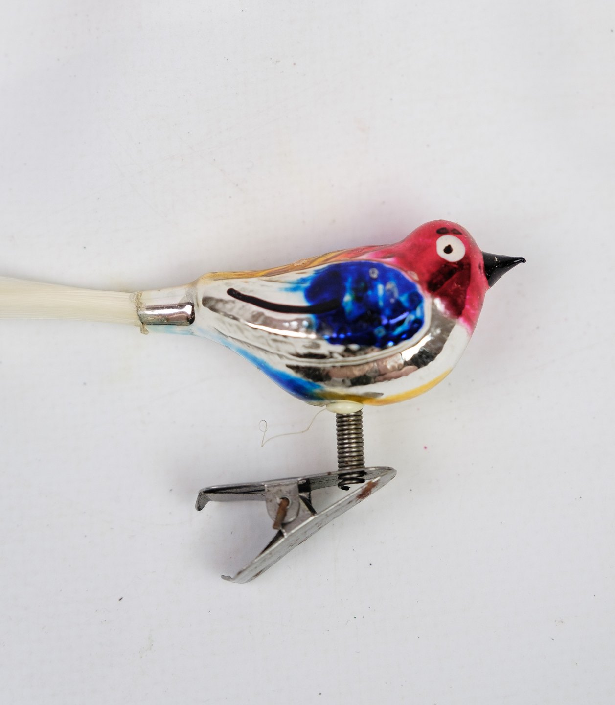Old Christmas decoration of hand-painted glass bird from around the 1930s.