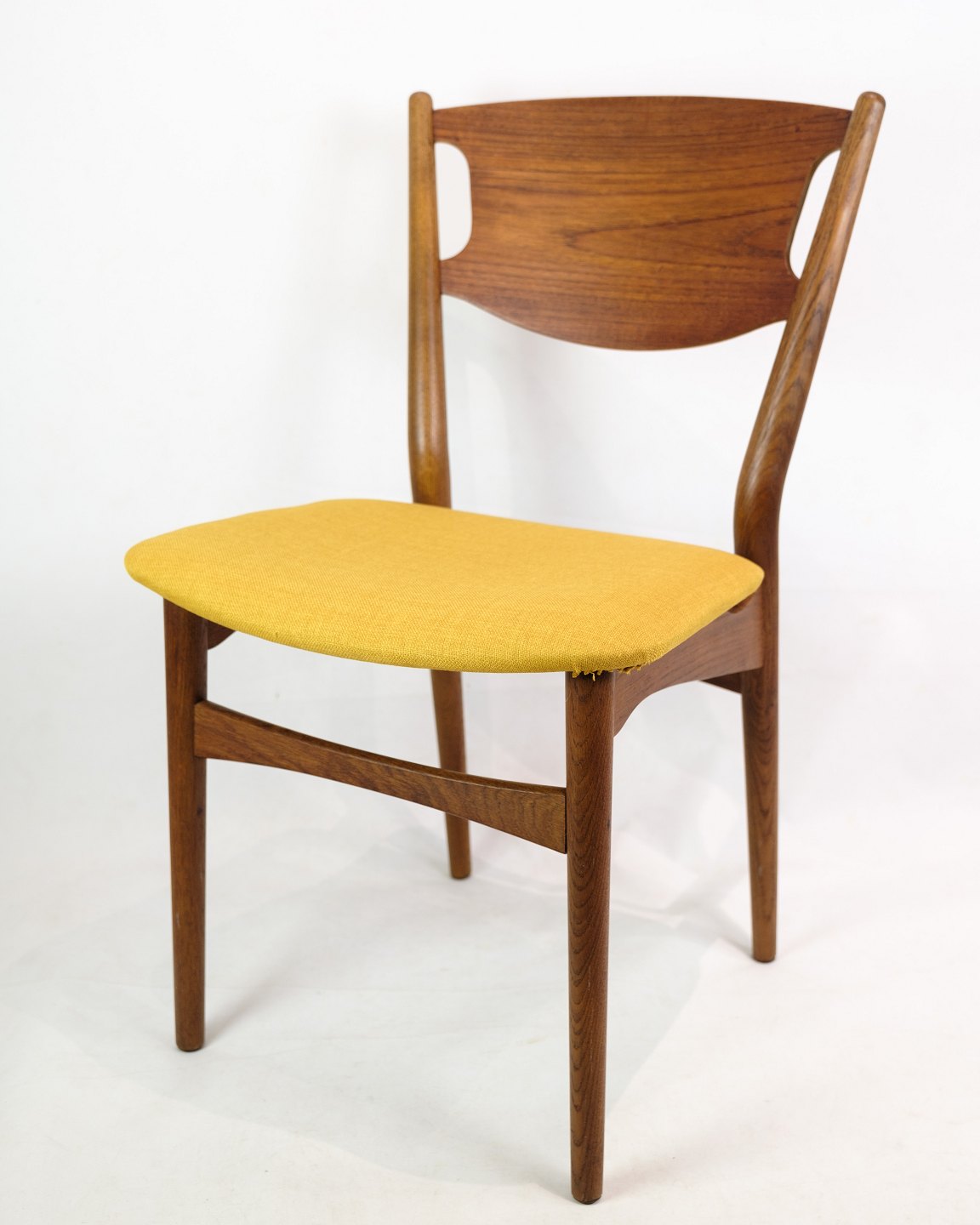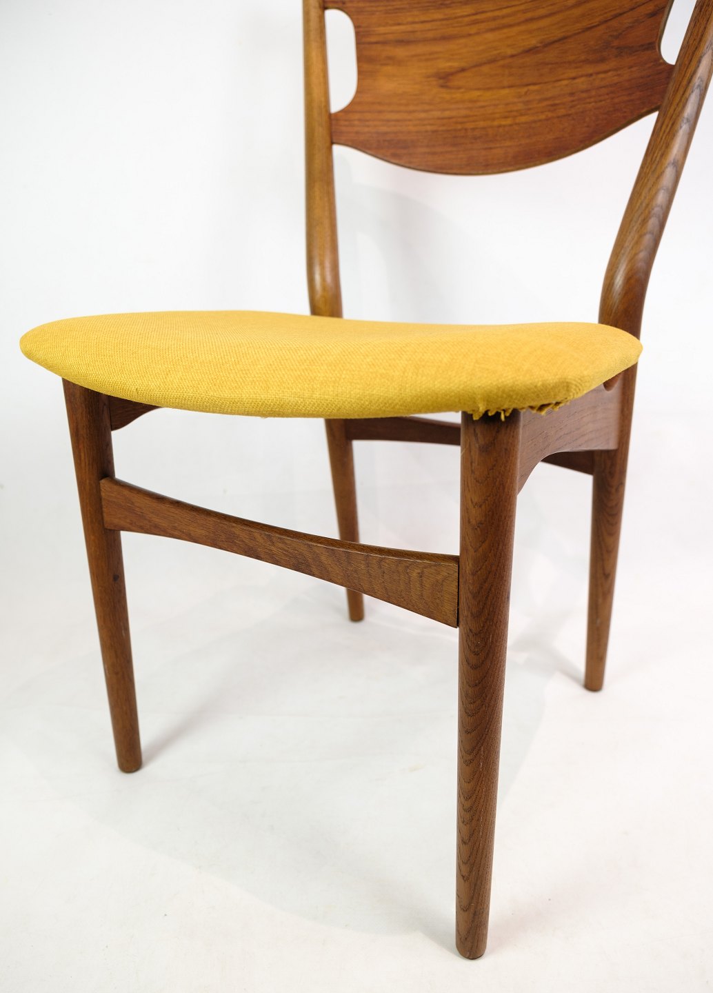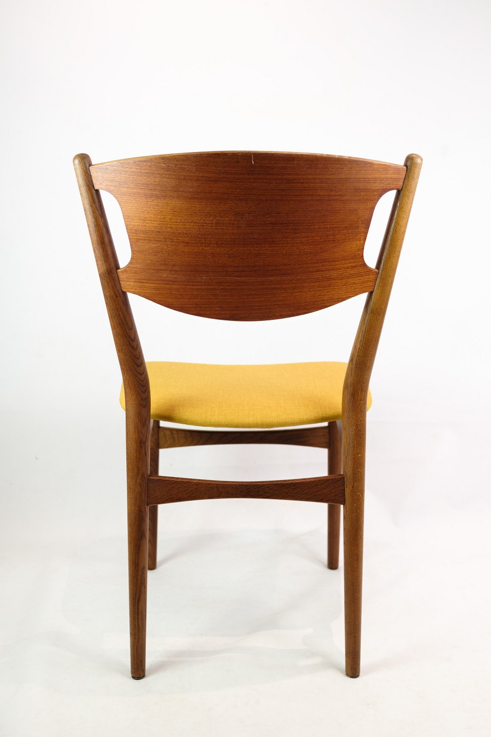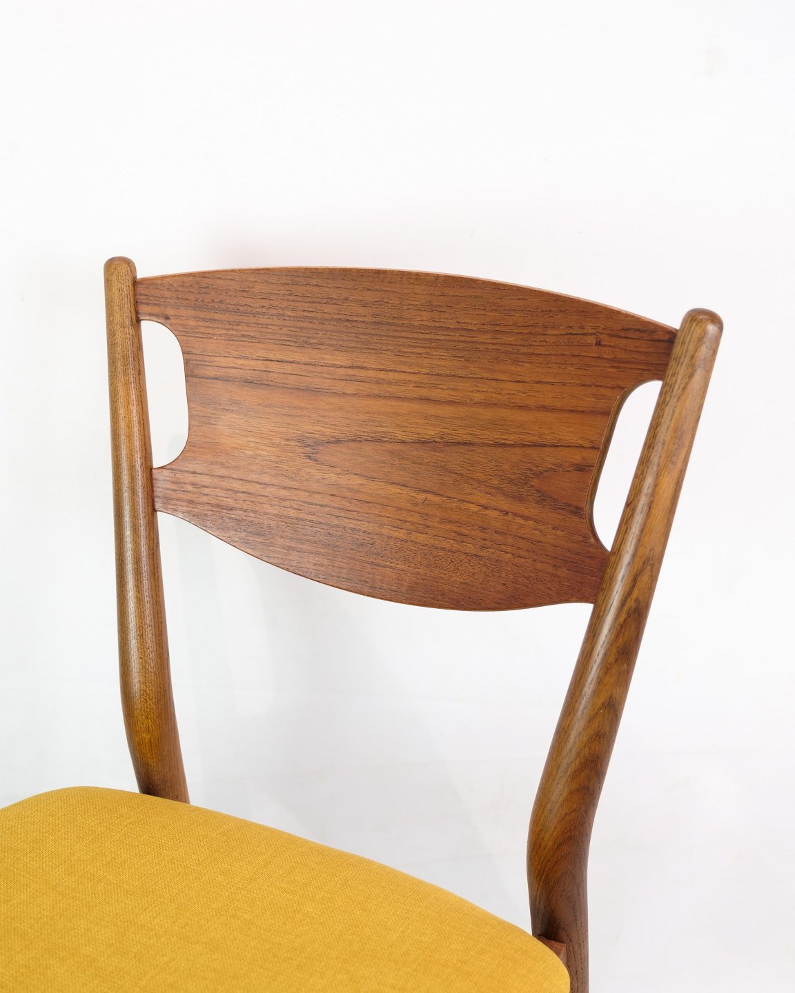 Sæt af 4, "model 42A" designet af Helge Sibast, Eg & teak, gult stof, 1953