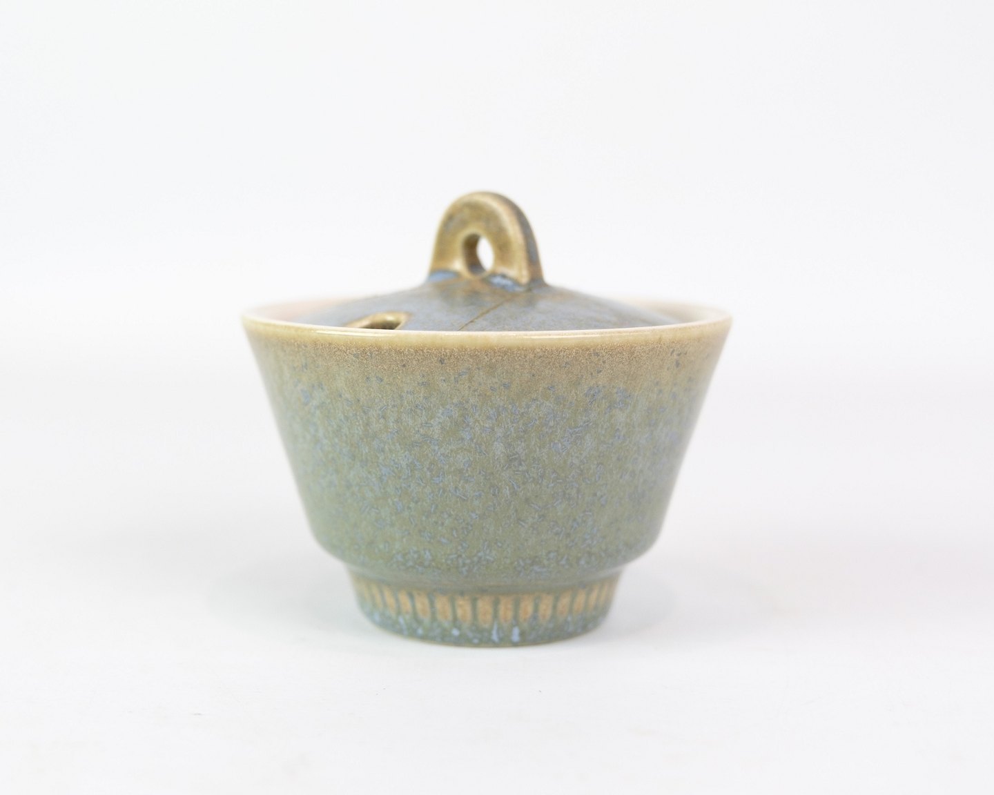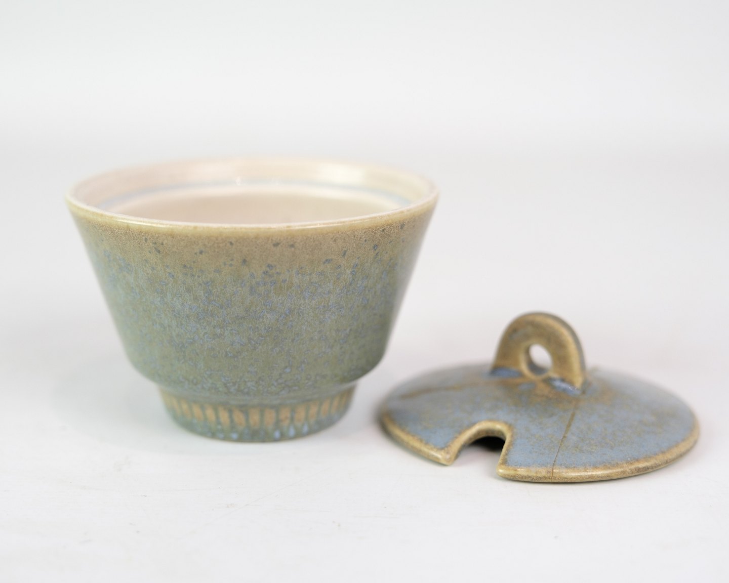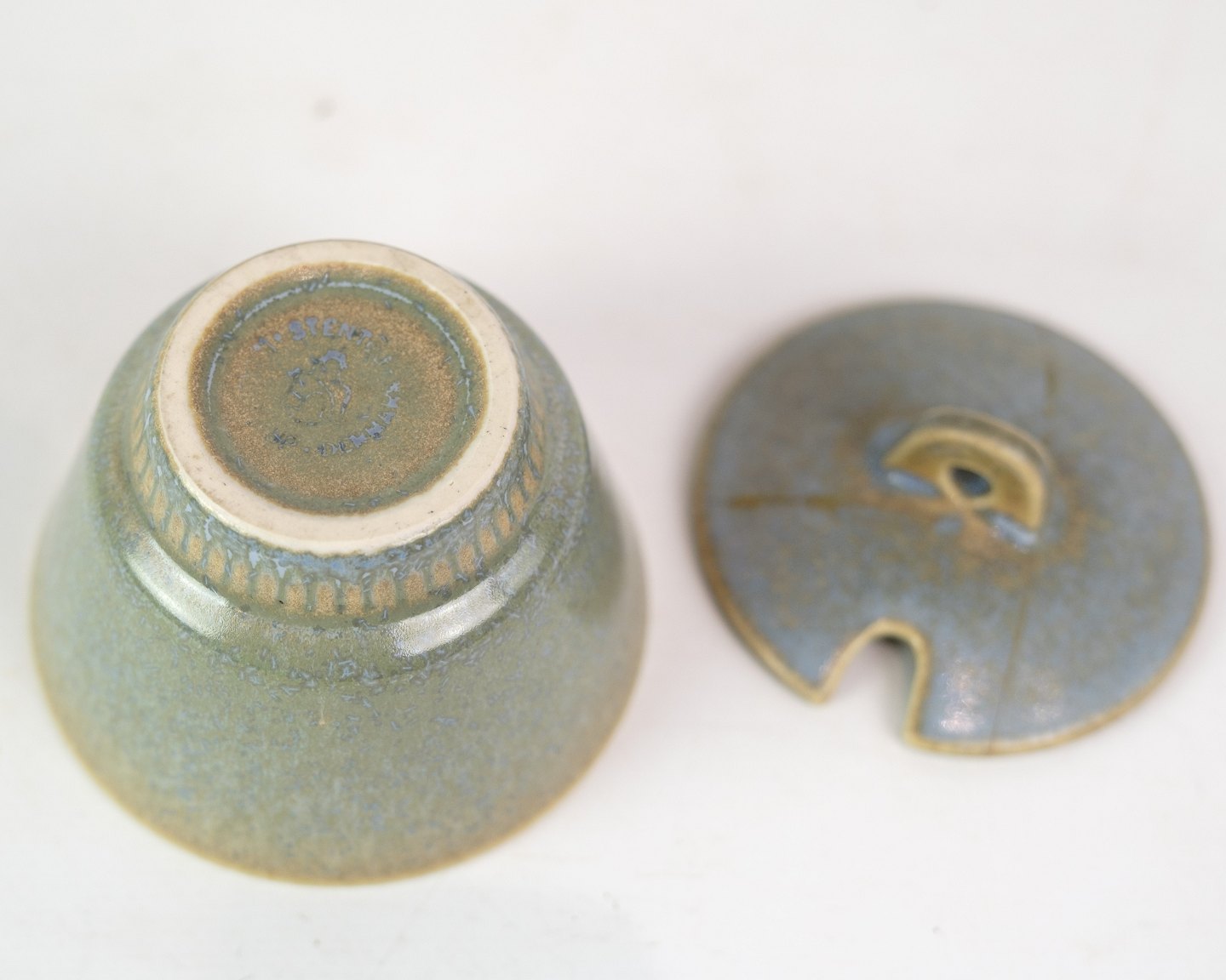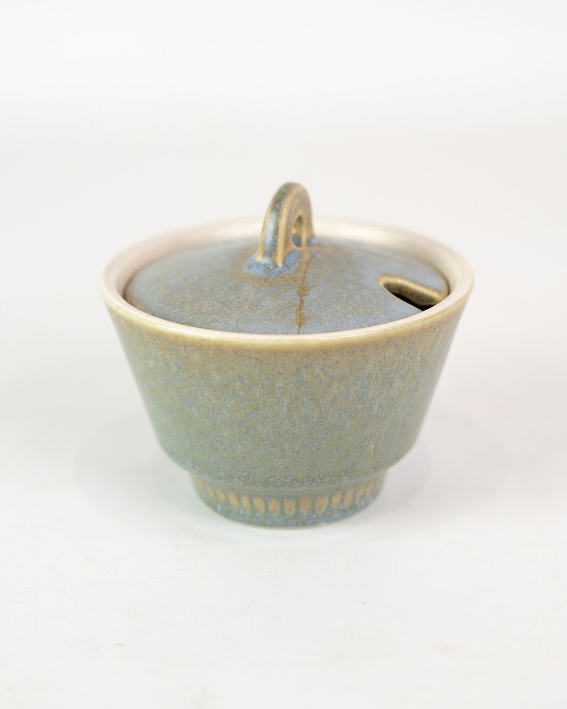 Knabstrup sukkerskål i stentøj af Nødebo i blå farver fra omkring 1970'erne