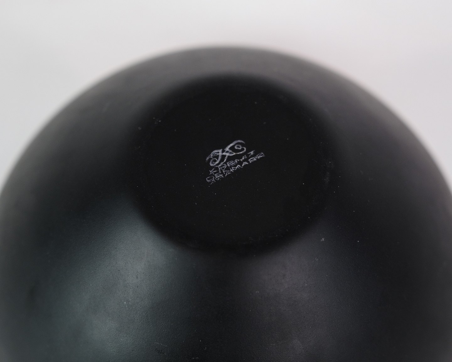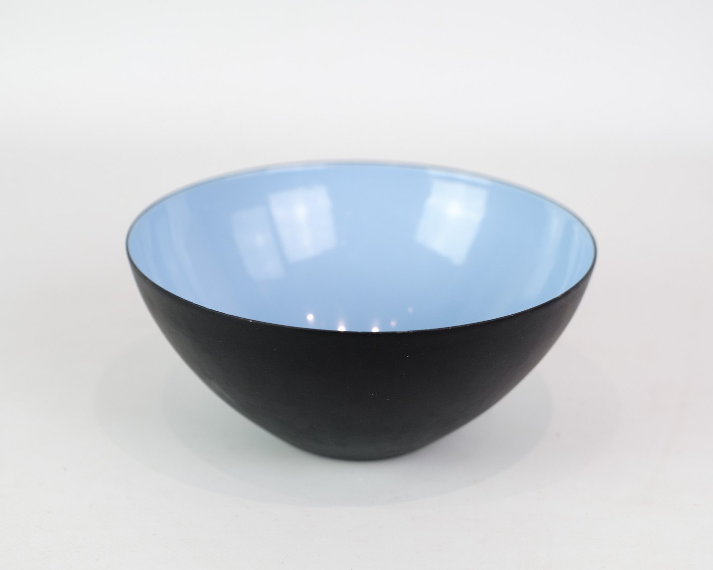 Krenit bowl by Herbert Krenchel in black metal and blue enamel from the 1960s. The bowl is of Danish design and in nice used condition