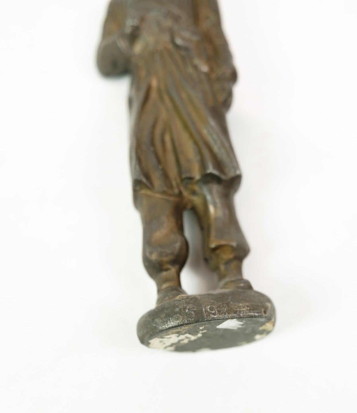 Soldier figure of patinated metal from around the 1940s. The figure also has an unknown signature.