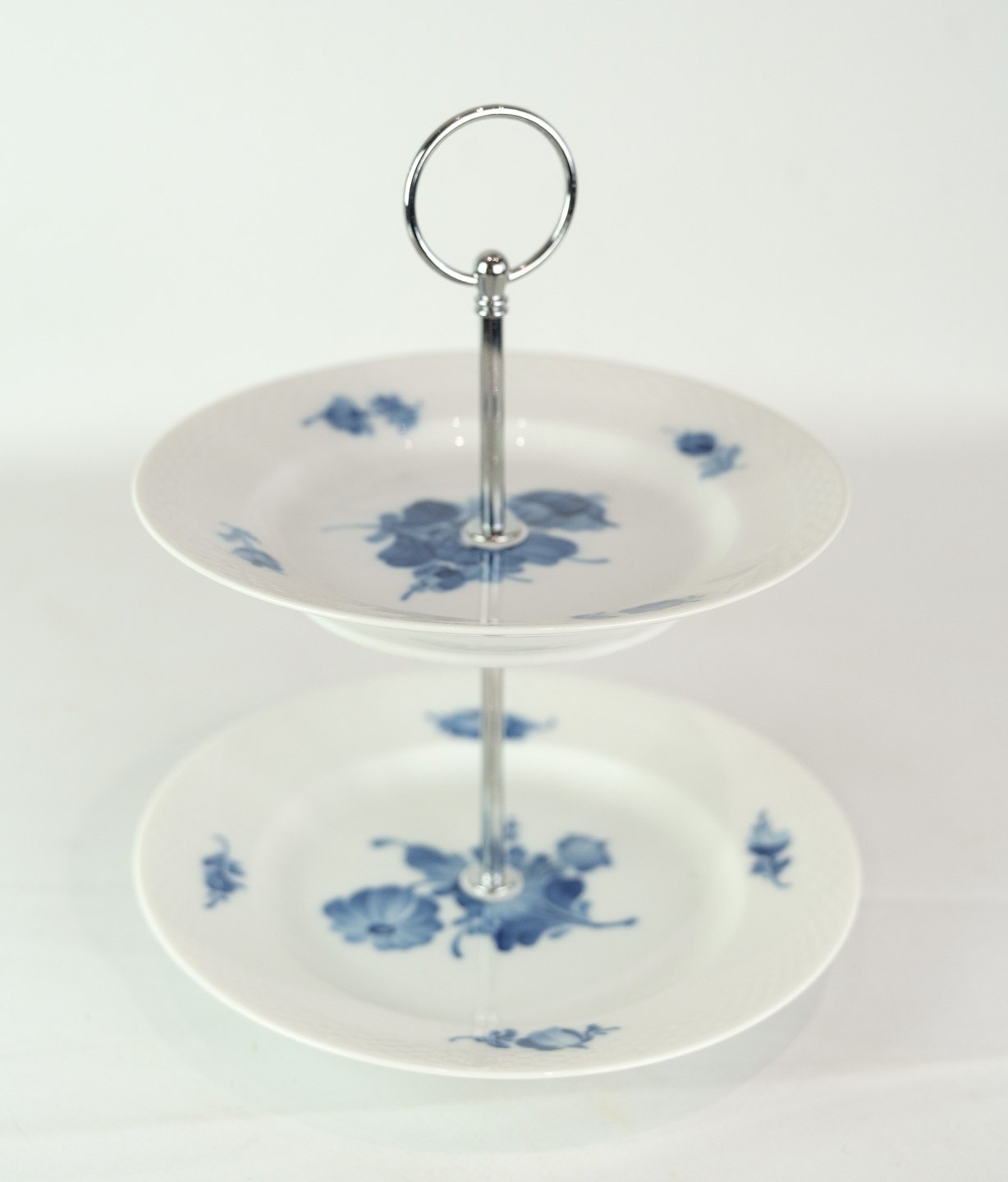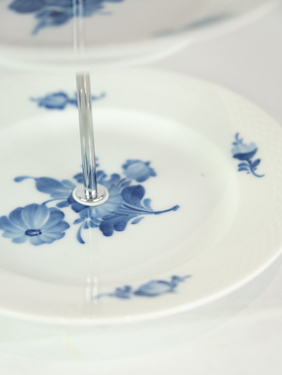 Kongelig todelt kage opsats i blå blomst flettet nr. 10/8094. Står i fin stand uden skader.