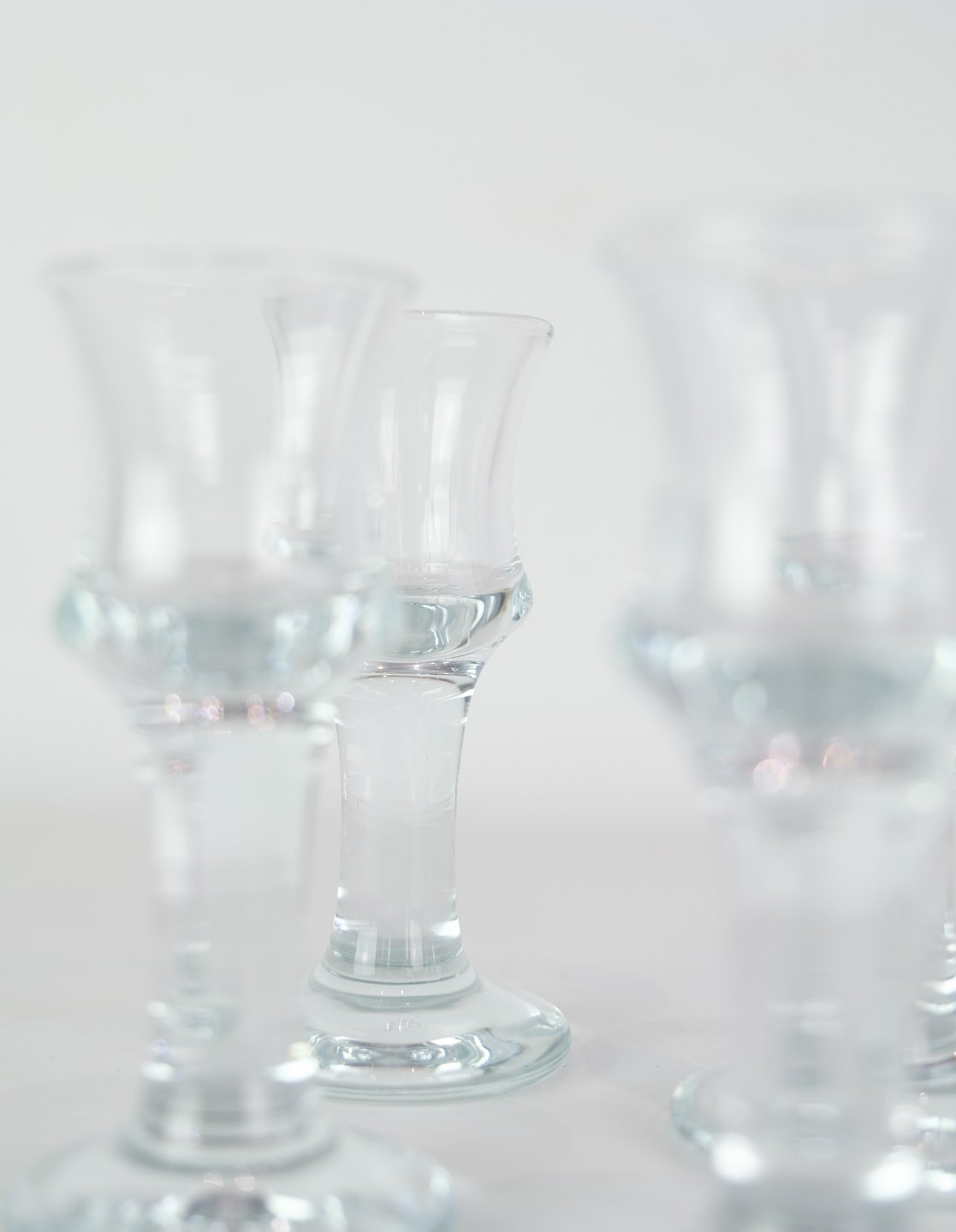 Tivoli glas fra Holmegaard med størrelse og brugt som snapse glas.