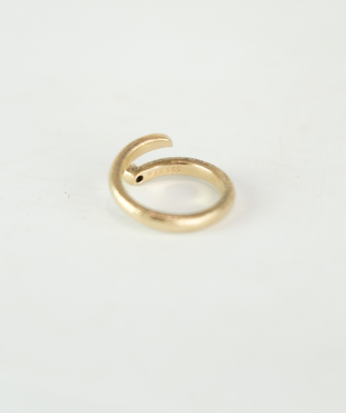 SoldTwo in a ring of 14 carat red and white gold. The ring with red gold has a beautiful diamond 0.04 carat. With a nice raw rustic surface. Stands in very fine condition both.