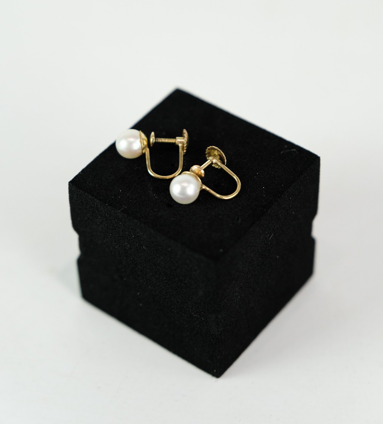 Kulturperle øreringe med skruelås i 14 karat, stemplet 585. Perlen har en flot cream hvid farve.