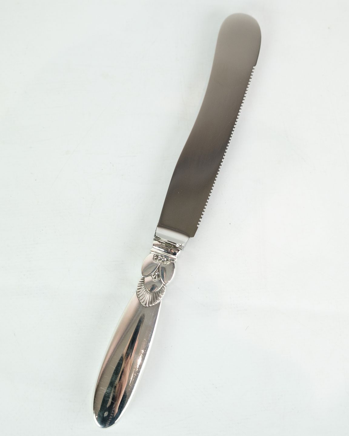SoldBread knife with cactus blade by George Jensen in sterling silver.
