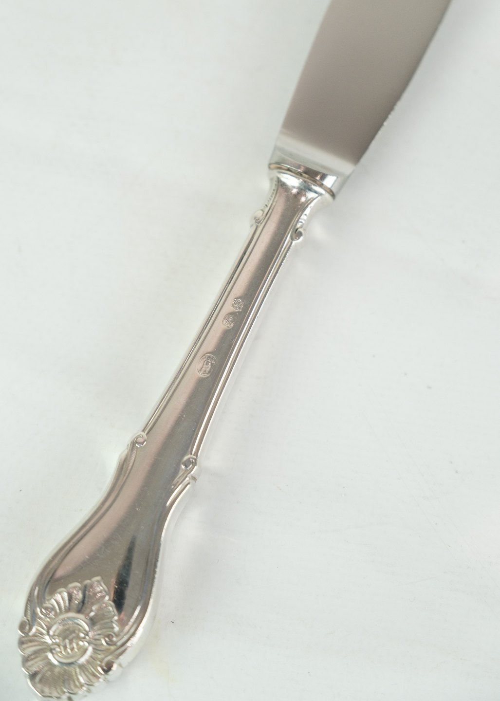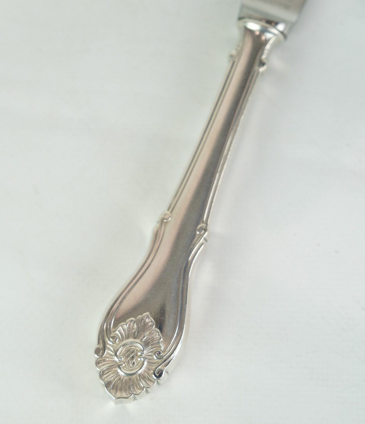 Middagsknive med saksisk mønstret lavet i sølv 830 sterling.