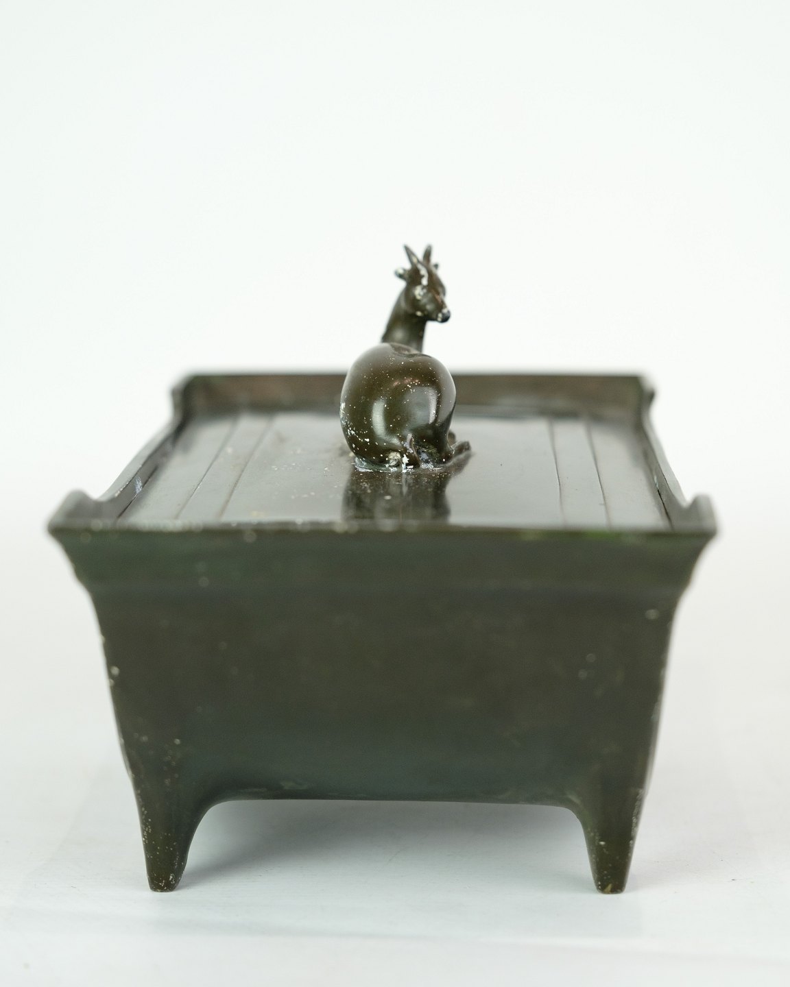 Tin box, designed by Just Andersen with decoration of deer early production stamped from around the 1940s.
