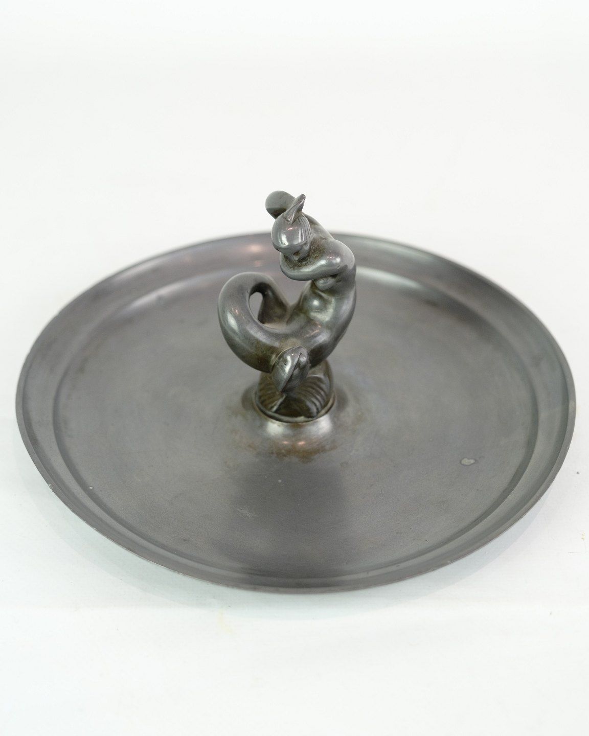 Fad, designet af Just Andersen med motiv af havfruefigur i disco metal fra 1930'erne.. Ofte brugt som nøglefad til skrivebordet eller indgangen.