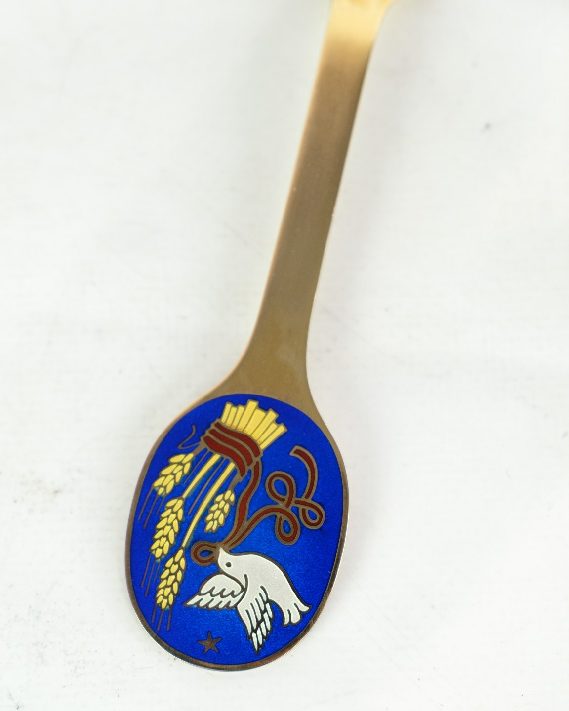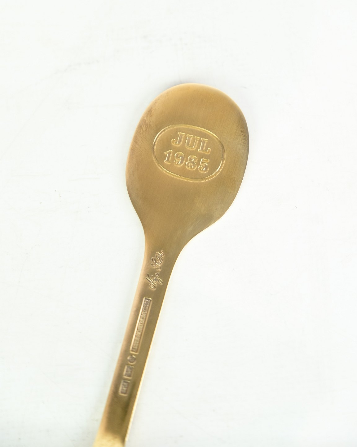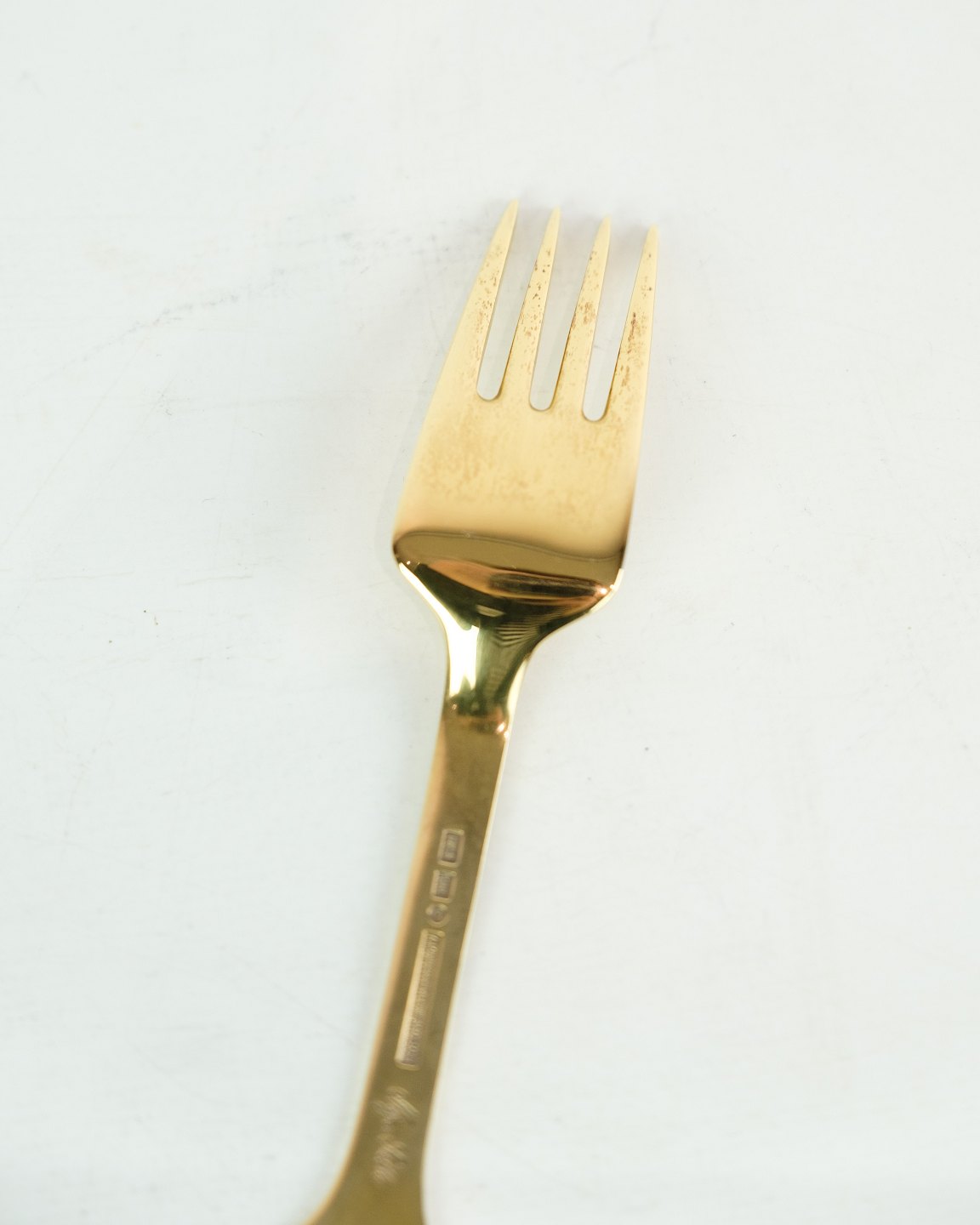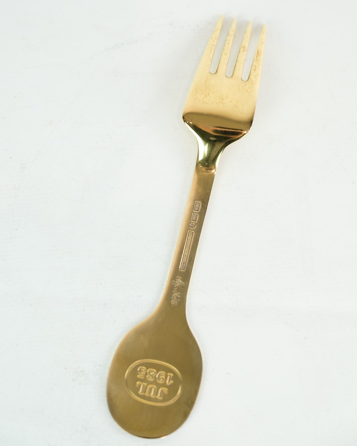 Anton Michelsen Christmas fork in 1985 gold-plated sterling silver is a beautiful and exclusive fork designed by the renowned Danish painter Naja Salto. The fork is made of sterling silver that is gilded with gold to give it an elegant look. The unique motif on the fork is Bird's Nest, which is inspired by the beautiful Danish natural scenery and creates a fantastic contrast to the glittering gold surface. The fork is a valuable and unique piece of Danish handicraft that will make a beautiful addition to any collection of Christmas goodies.