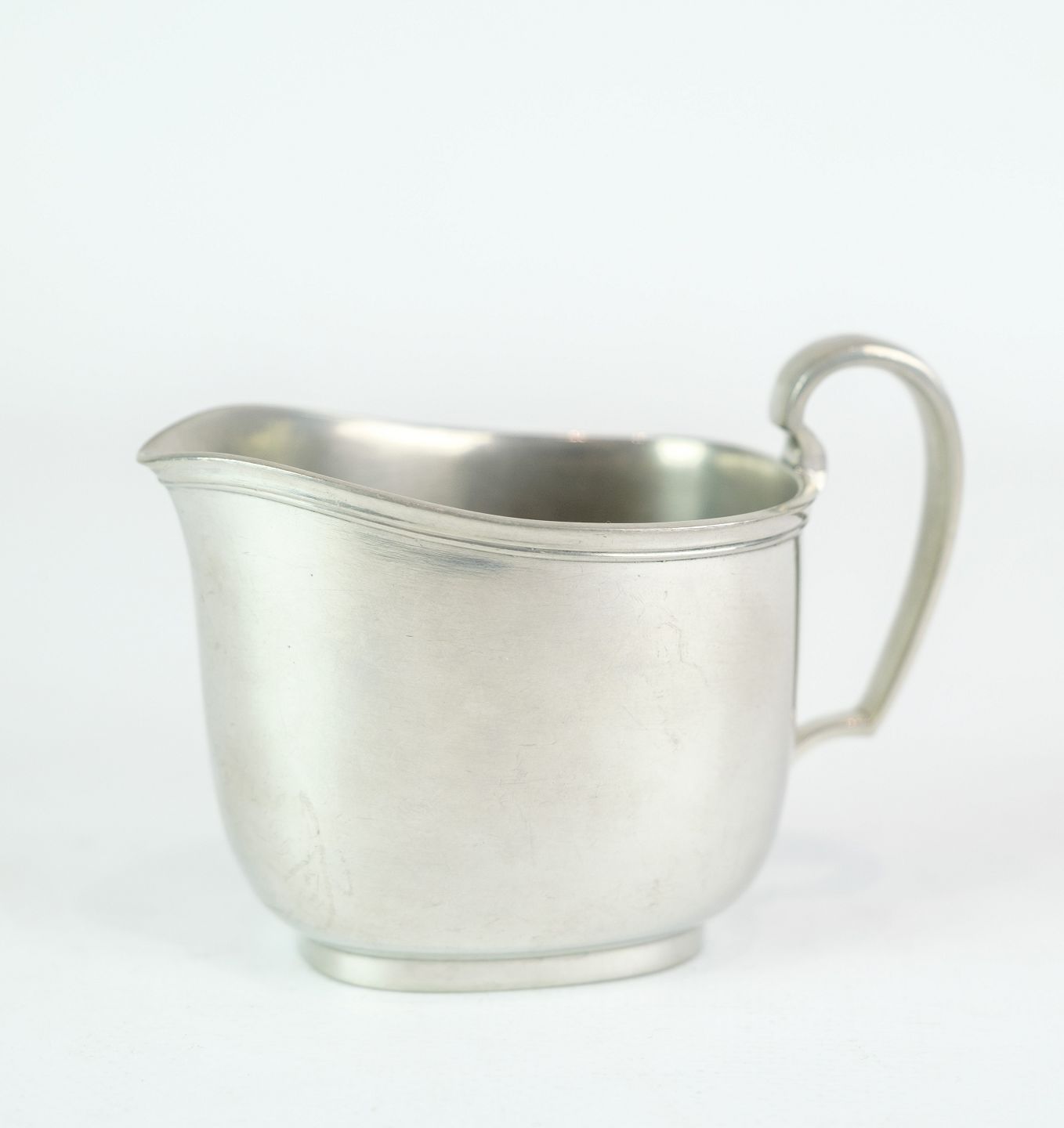 The Just Andersen cream jug in tin is a beautiful and practical addition to any coffee or tea table setting. The jug is made of durable pewter material, which makes it easy to clean and maintain. The pitcher's elegant design will impress guests while still being practical enough for everyday use. A must-have for fans of retro or vintage style