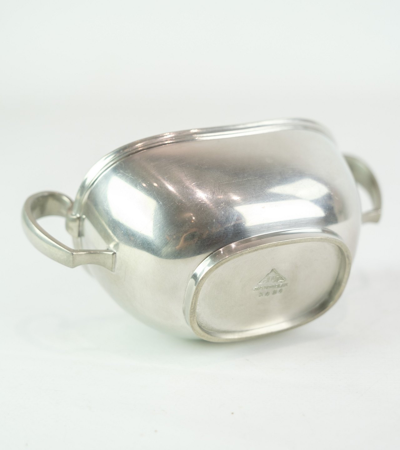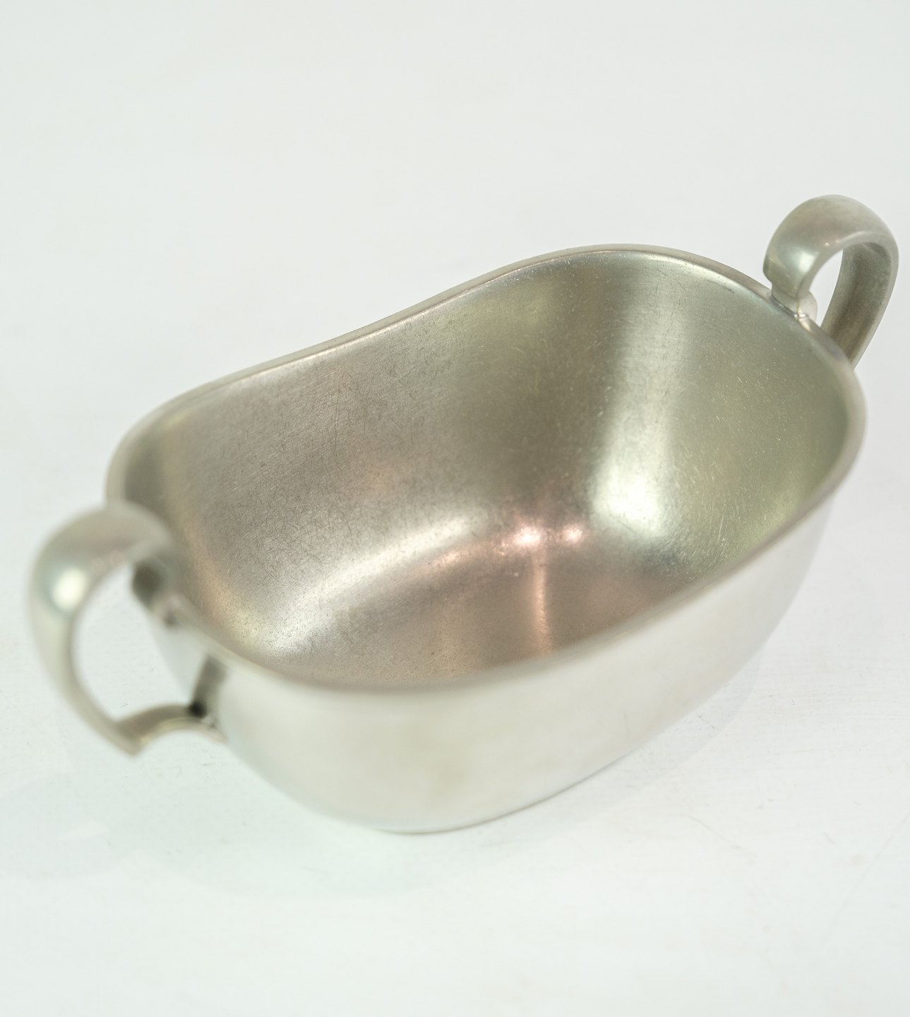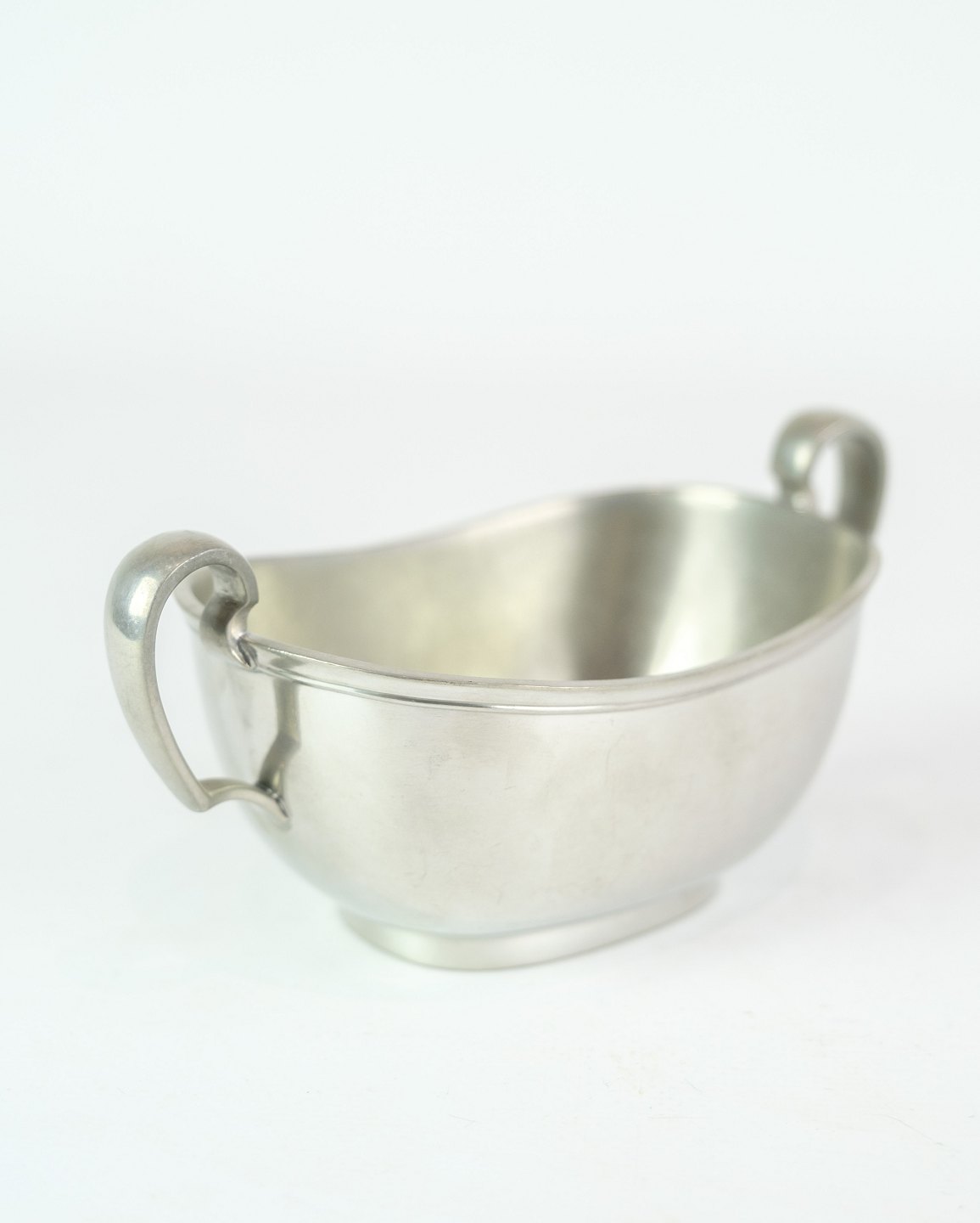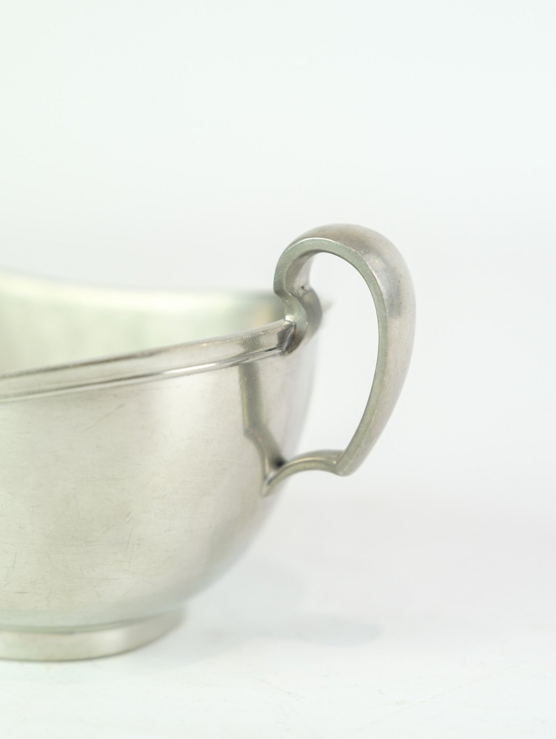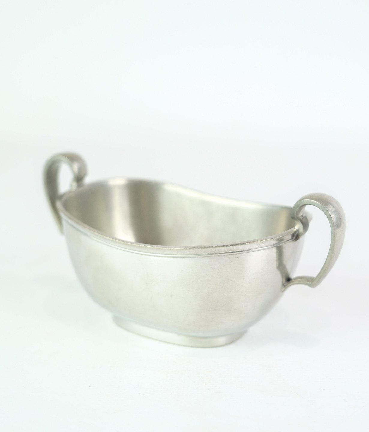 Just Andersen sukkerskål i tin er en elegant og praktisk tilføjelse til enhver kaffe- eller tebordopdækning. Skålen er fremstillet af holdbart tinmateriale, der gør den nem at rengøre og vedligeholde. Skålens elegant design vil imponere gæsterne, mens den stadig er praktisk nok til daglig brug. En must-have for fans af retro eller vintage stil
