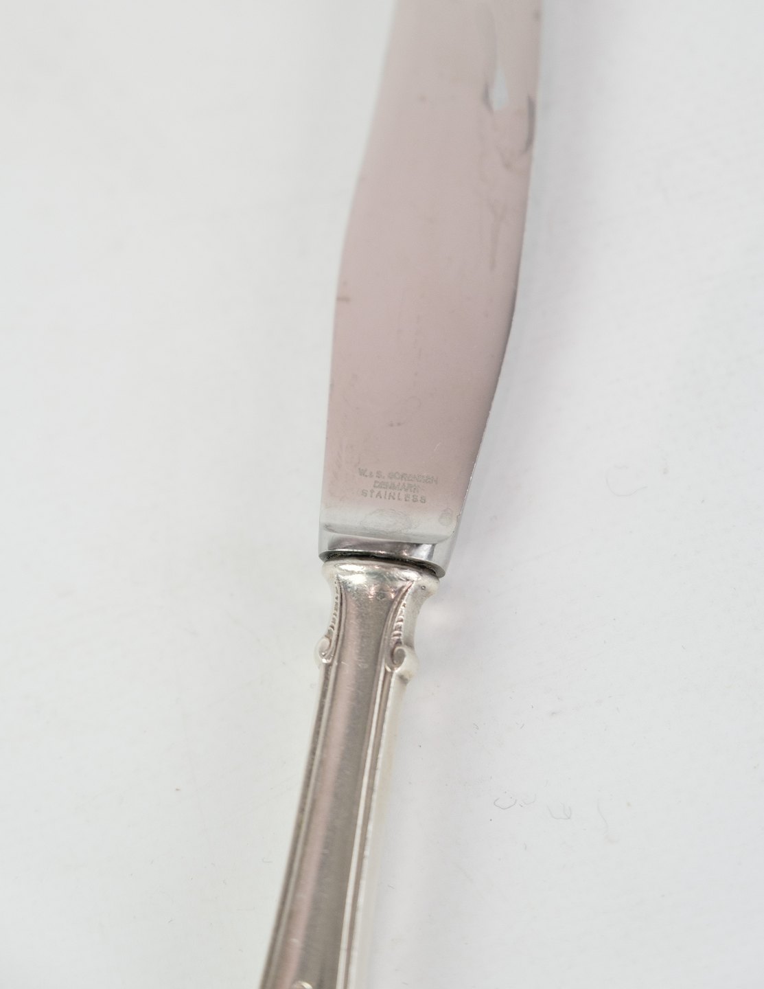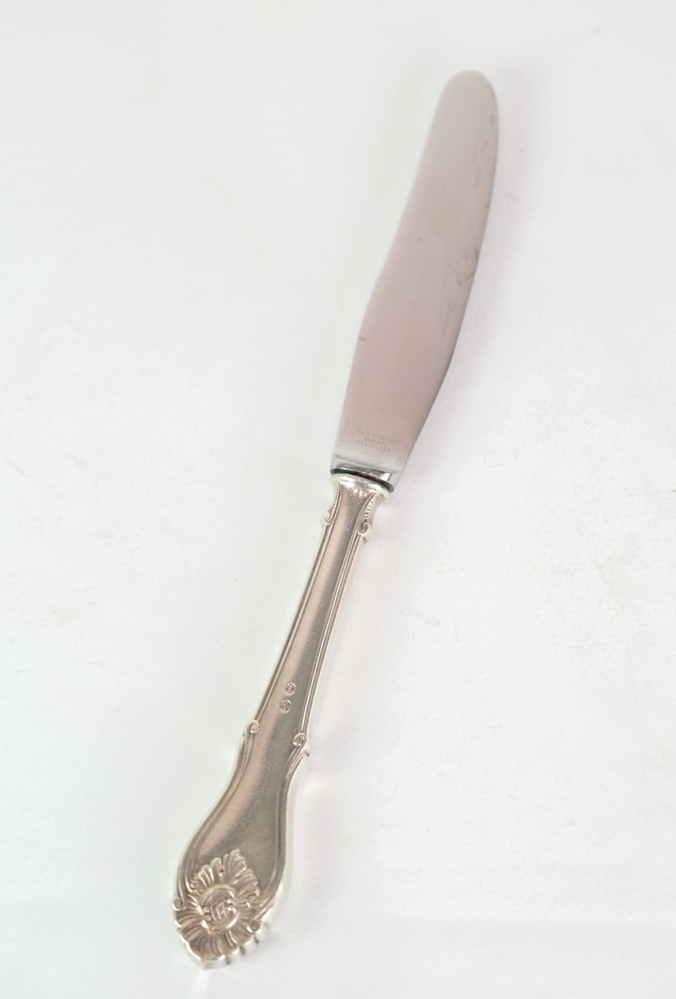 Rococo dinner knife of Danish silver cutlery in the three tower 830s manufactured at Horsens silverware factory.