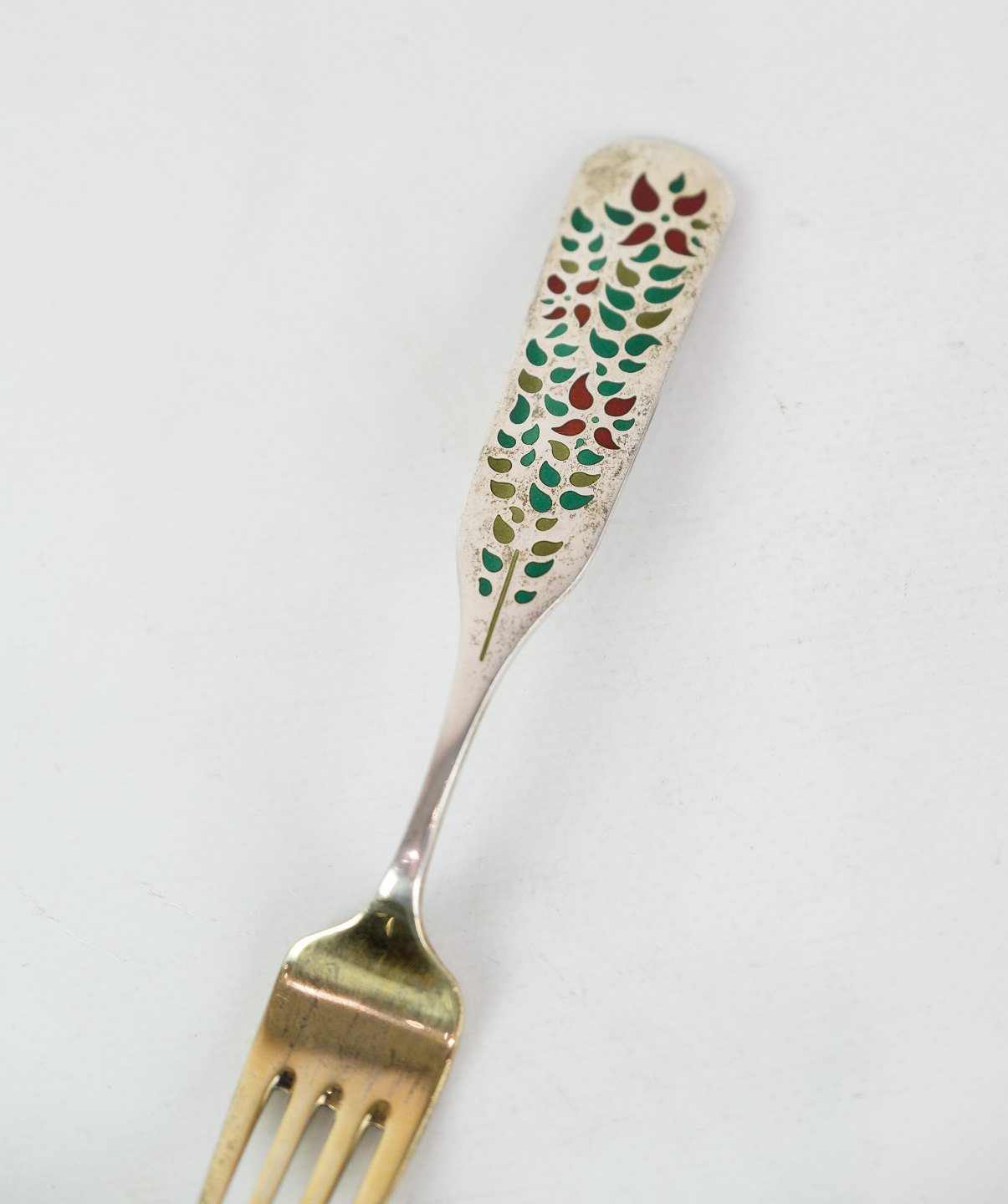 Anton Michelsen forgyldt sterlingsølv julegaffel fra 1955 er et smukt og eksklusivt stykke sølvtøj, designet af Palle Pio. Gaffelen er lavet af høj kvalitet sterlingsølv og er forgyldt med guld, som giver den en glansfuld finish. Det elegante design med de fine detaljer gør denne julegaffel til et must-have til din julebordssamling. Brug den til at spise julemaden med stil og elegance, eller lad den være en del af din juledekoration. Uanset hvad du vælger, vil Anton Michelsen forgyldt sterlingsølv julegaffel fra 1955 være en værdifuld og unik tilføjelse til dit hjem.
