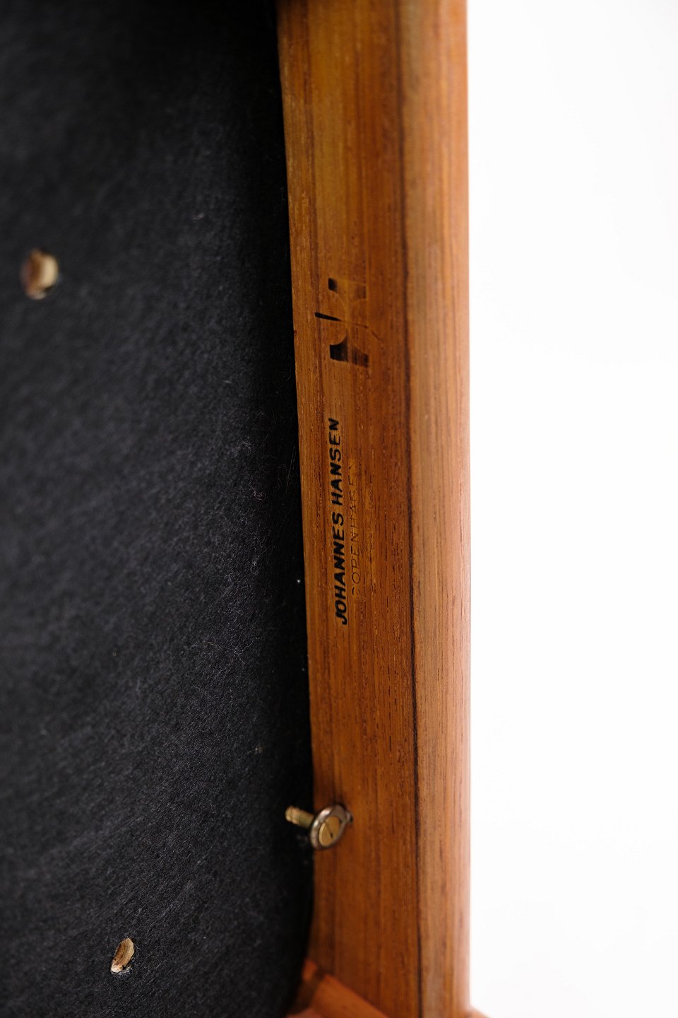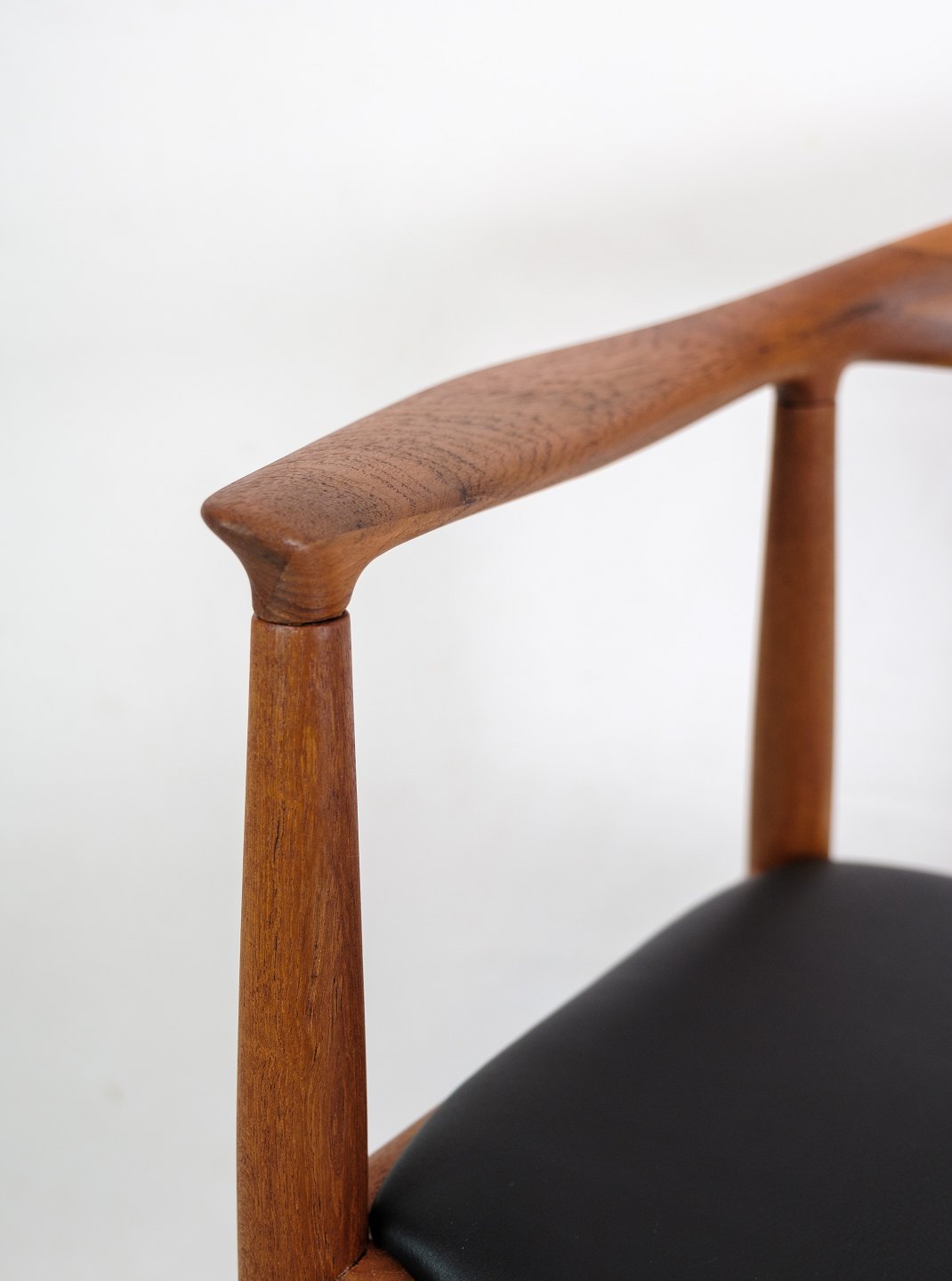 SolgtDette er en teak og læder-stol designet af Hans J. Wegner for Johannes Hansen i 1950'erne. Modellen JH 503 er kendt som "The Chair" eller "The Round Chair" og er en samlerobjekt på grund af sin kvalitet og exceptionelle design. Stolen har en superb bearbejdet teakstruktur, flot samling til armlæn og ryg og et stort lædersæde. Vi er i stand til at skaffe flere af denne varer så hvis du ønsker et sæt af 4 er det en mulighed.
