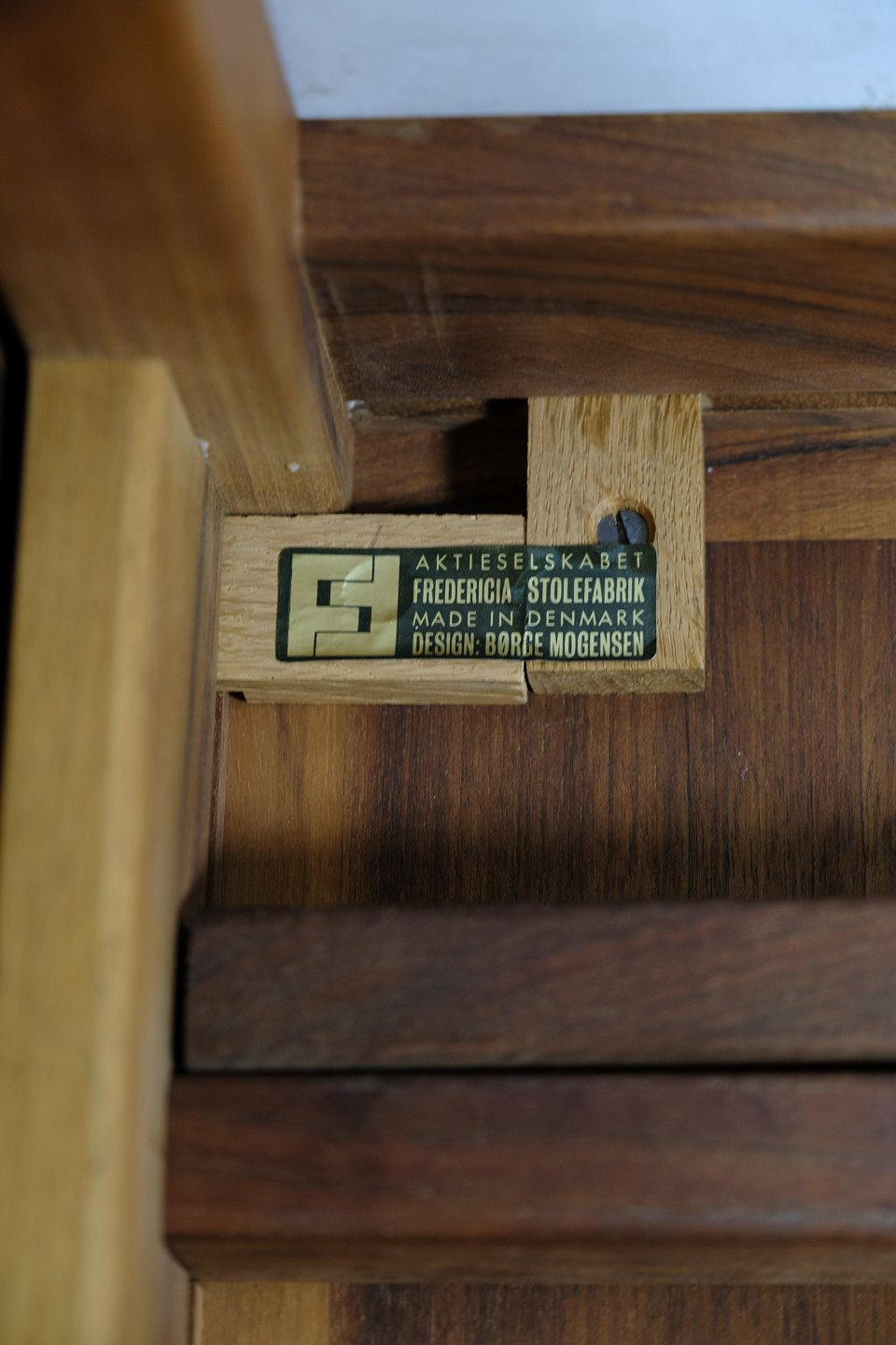 Bordet er i flot brugt stand, hvilket giver det en unik patina og karakter, som er typisk for vintage-møbler. Det vil være perfekt til enhver, der elsker den tidløse skandinaviske stil og ønsker at tilføje et stykke af Børge Mogensens ikoniske design til deres hjem.