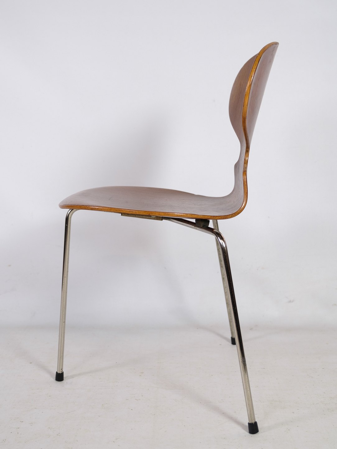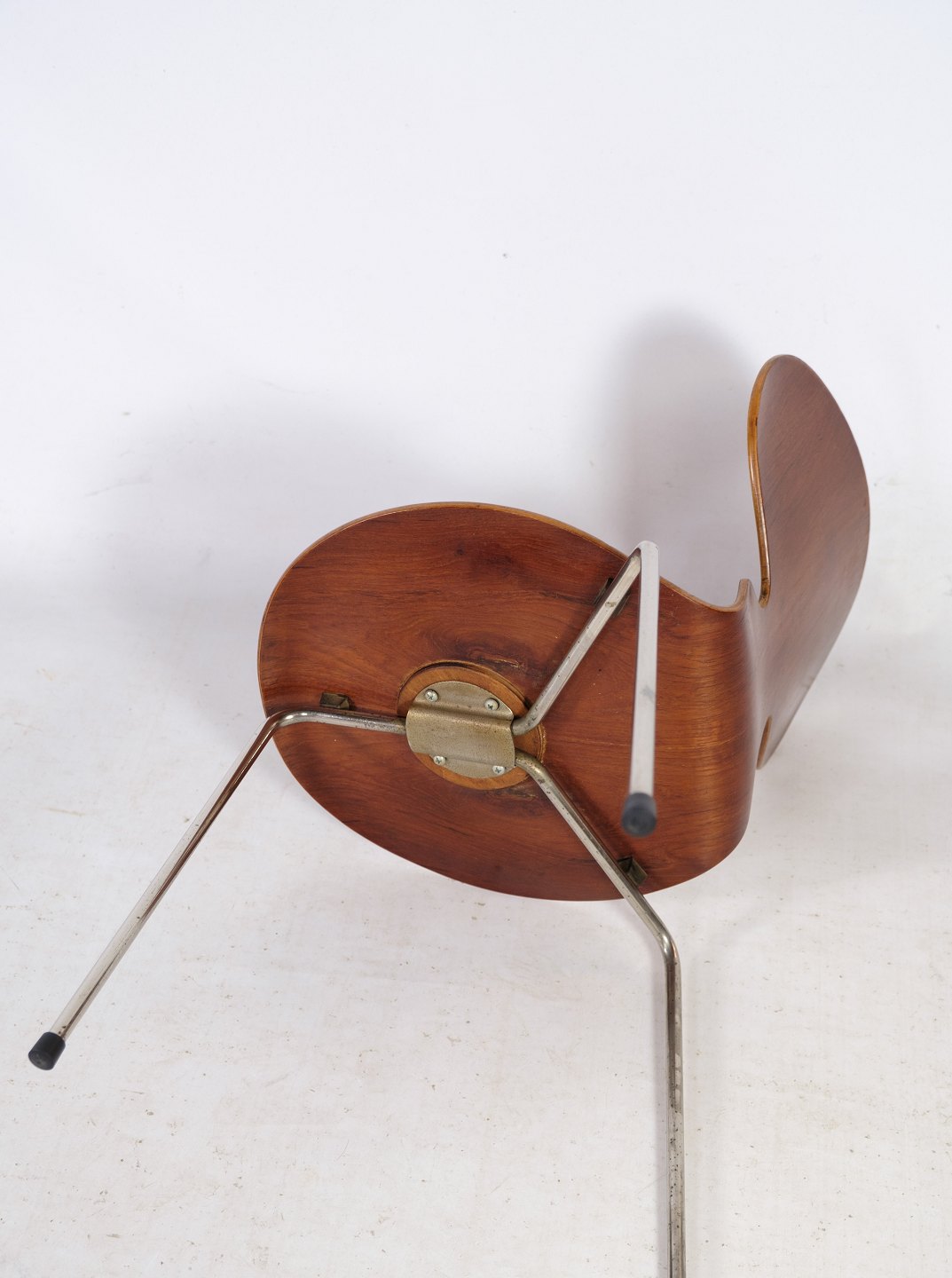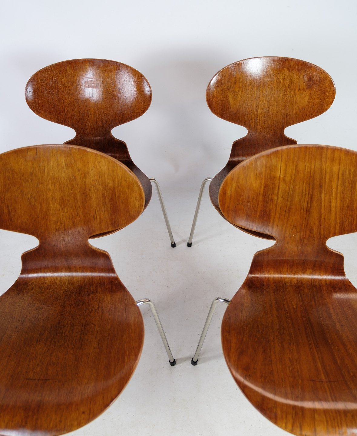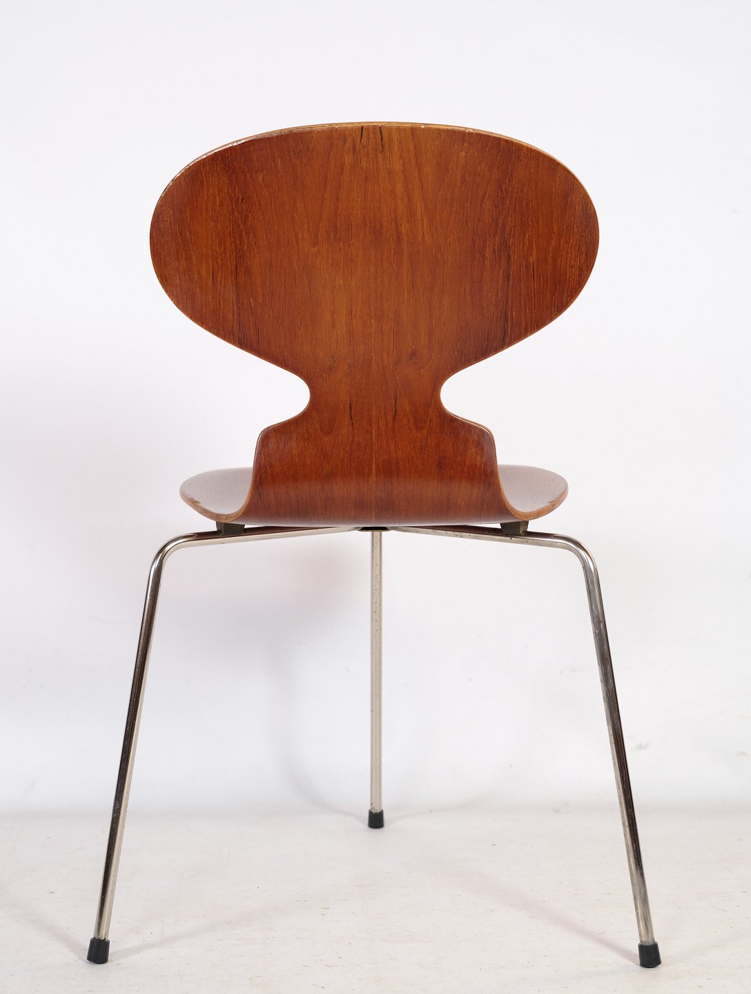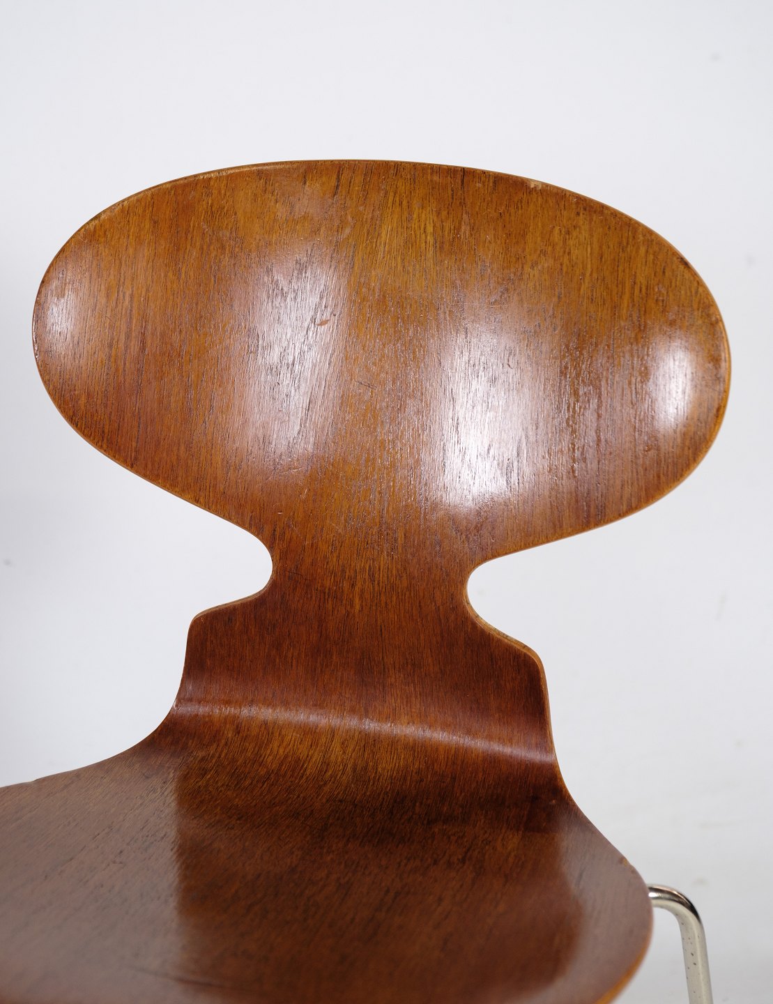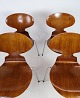 Set of four ant chairs, model 3100, Arne Jacobsen (1902-1971), teak wood, three-legged l. Model 3100, Fritz Hansen. Early edition