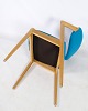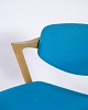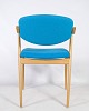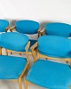 The chairs have a classic and minimalist design with an organic shape that is both comfortable and aesthetically pleasing. The seat is upholstered in blue fabric, which adds an extra dimension of elegance and luxury, while the legs are made of oak.