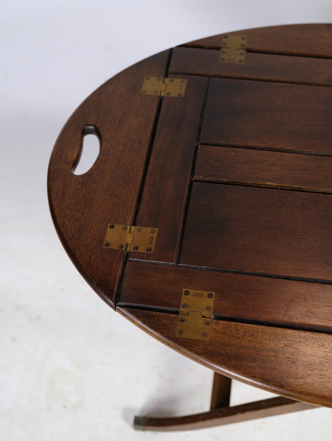Sidebord / Sidebord i Mahogni med messing beslag fra omkring 1950'erne. Står i meget fin brugt stand.