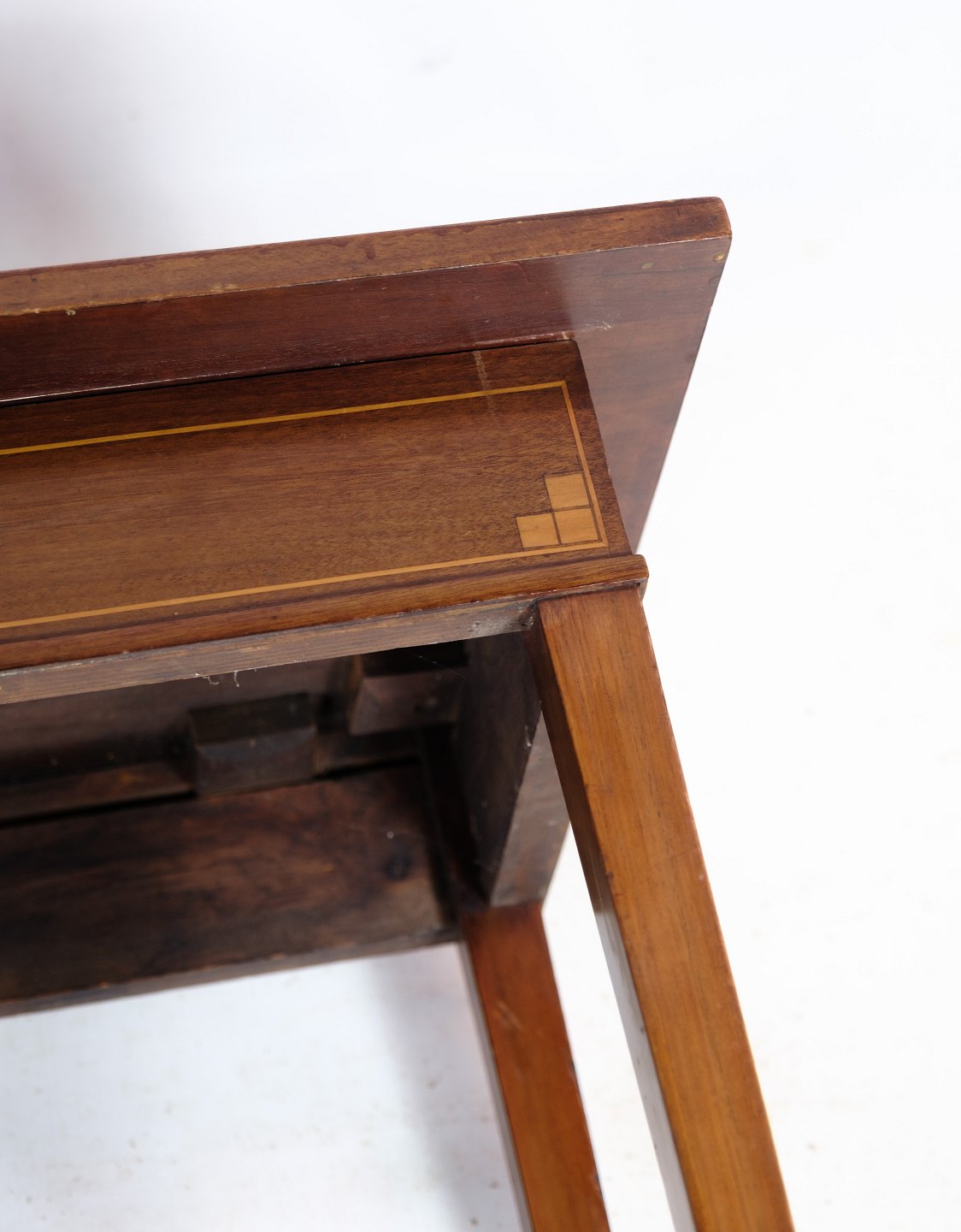 Mahogany side table with decoration in the form of walnut marquetry on both table top and legs from around the 1920s.