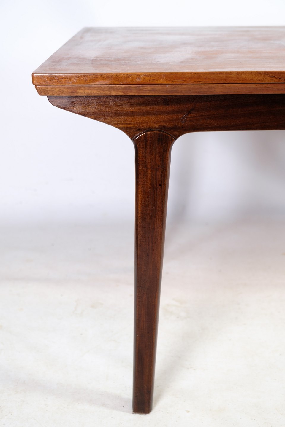SolgtSpisebord i teaktræ med hollandsk udtræk af dansk design fra omkring 1960'erne. Står i fin brugt stand.