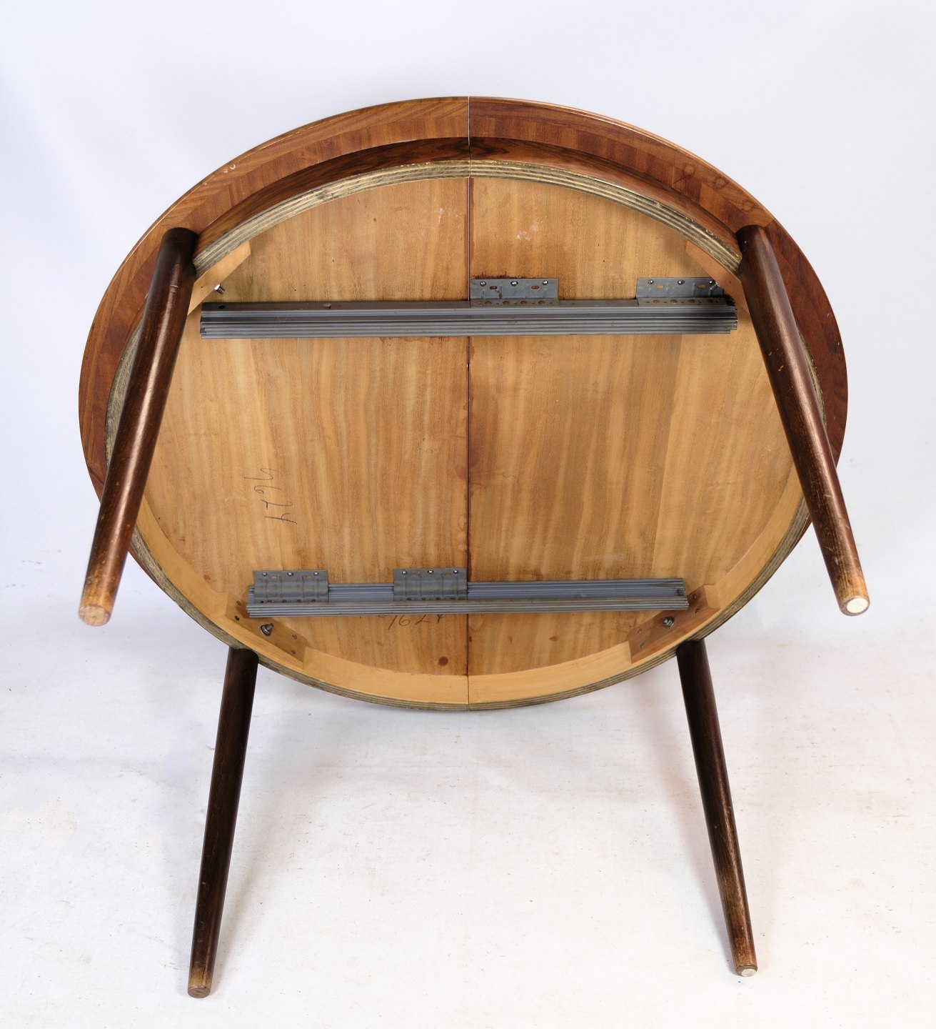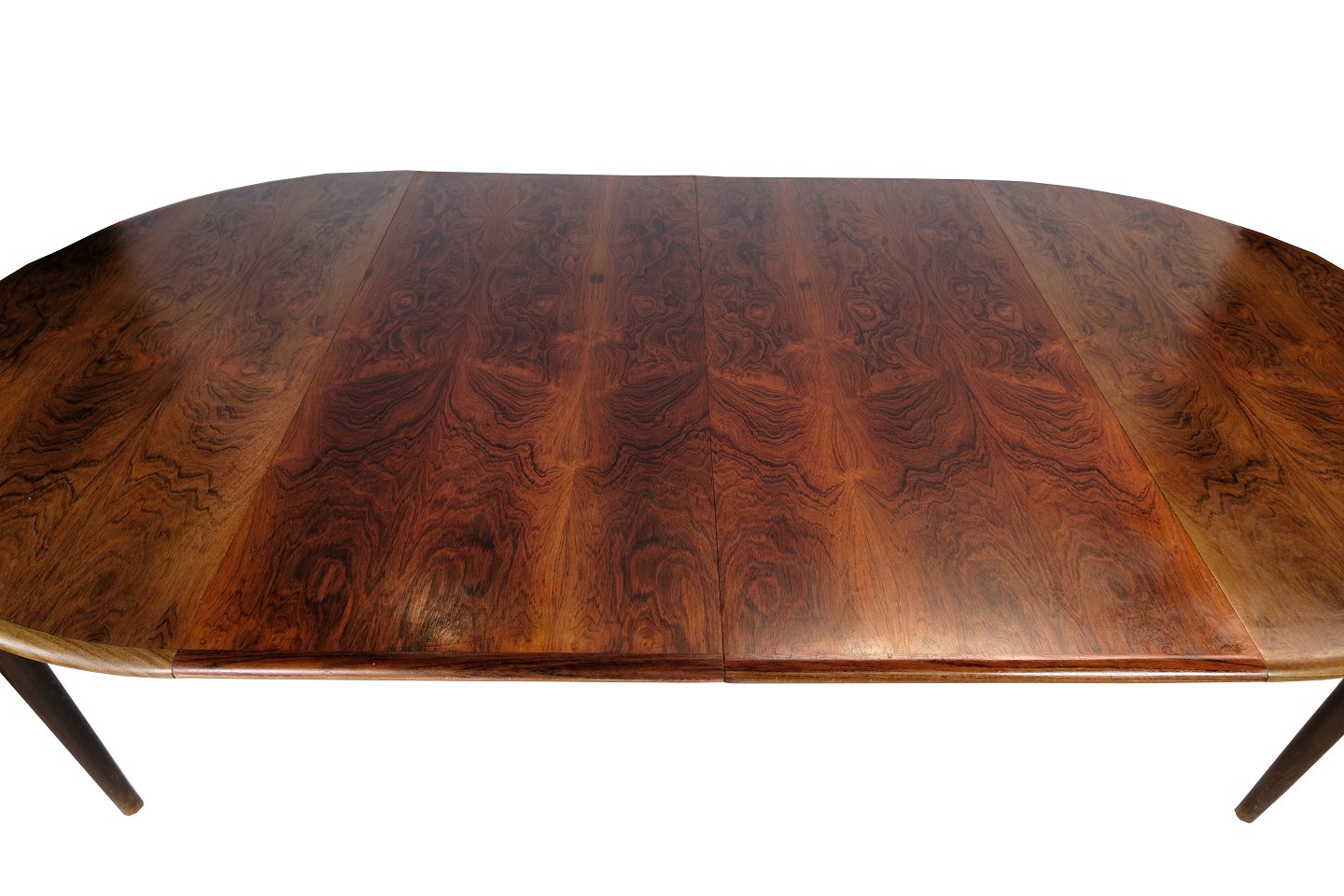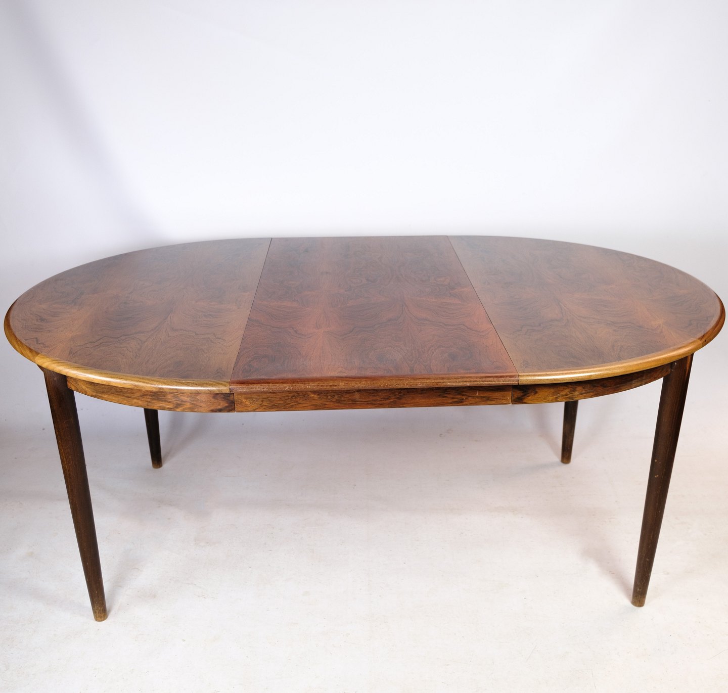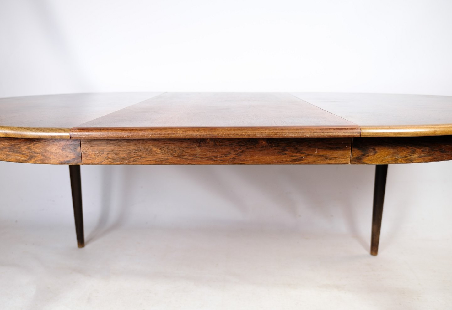 SolgtRundt spisebord i palisander i dansk design produceret af Skovby Møbelfabrik fra 1960'erne. 2 tillægsplader den ene med sarg af fineret palisander. Står i meget fin stand. Tillægsplader kan renoveres så det matcher resten af bord. Kontakt os