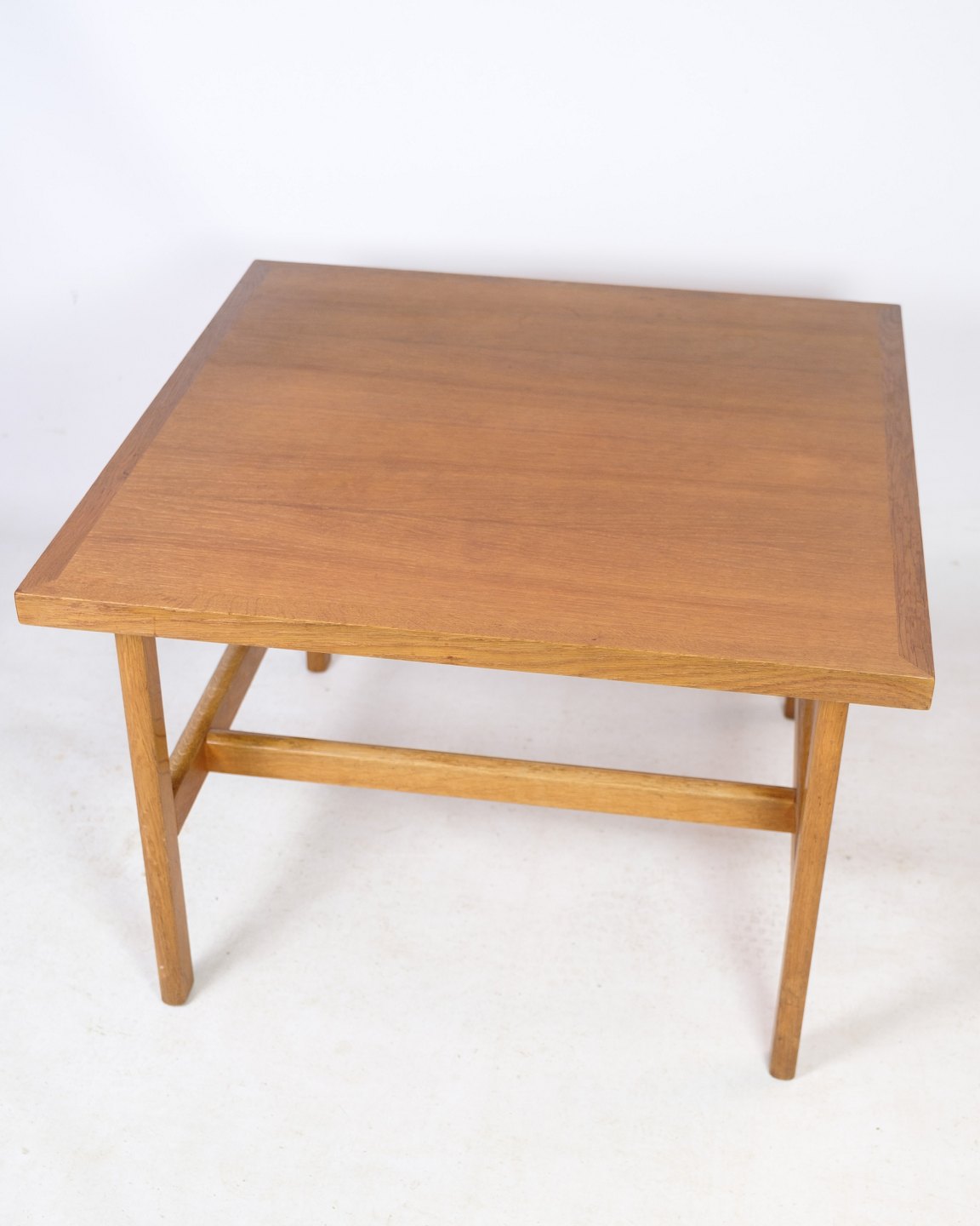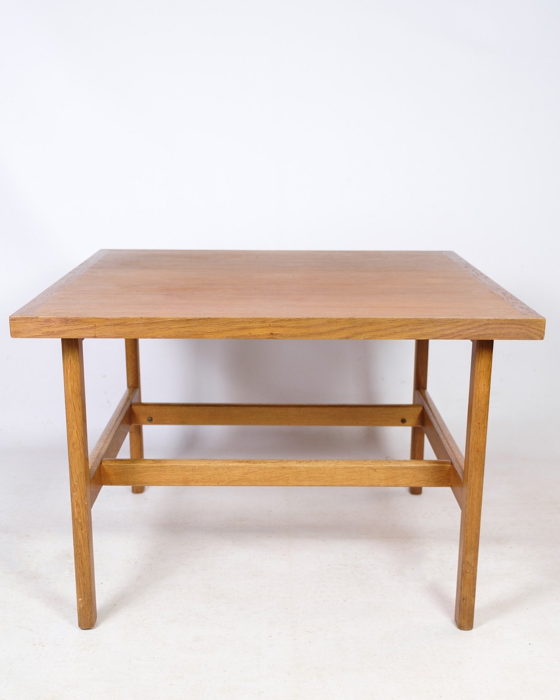 Square coffee table of veneered oak, designed by Børge Mogensen, manufactured by FDB Møbler from around the 1960s.