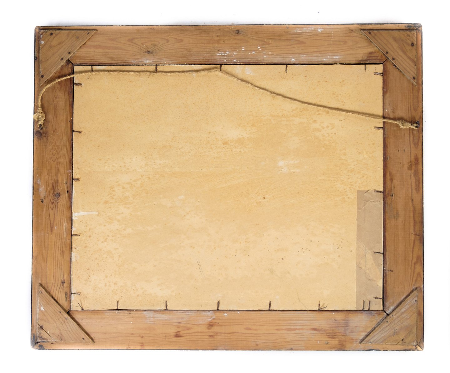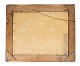 Maleri på træpladen i antik ramme af små huse og landskab med sne fra omkring 1930'erne