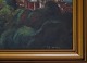 Maleri på lærredet i guldramme motiv af stor landsby fra omkring 1930'erne