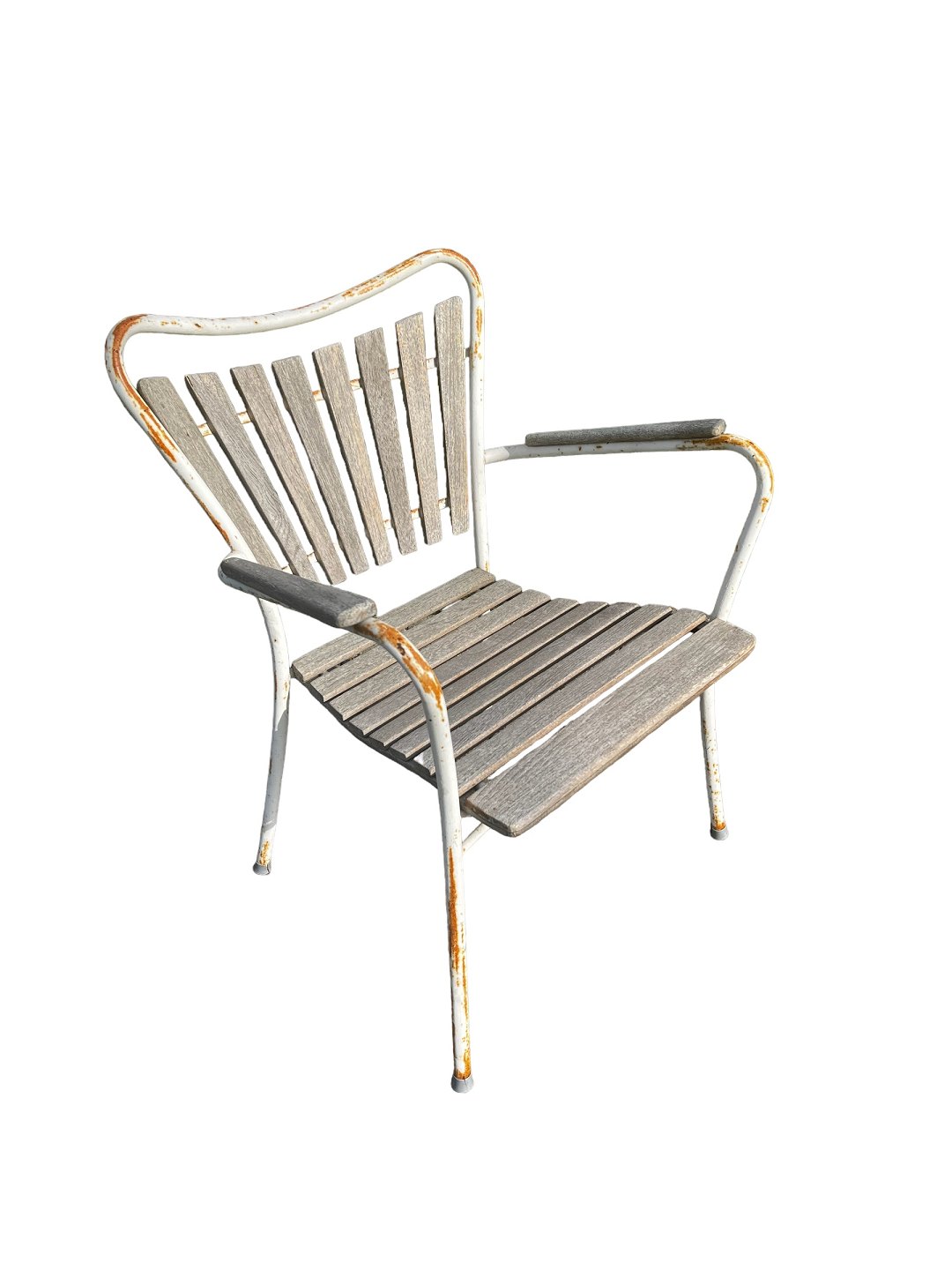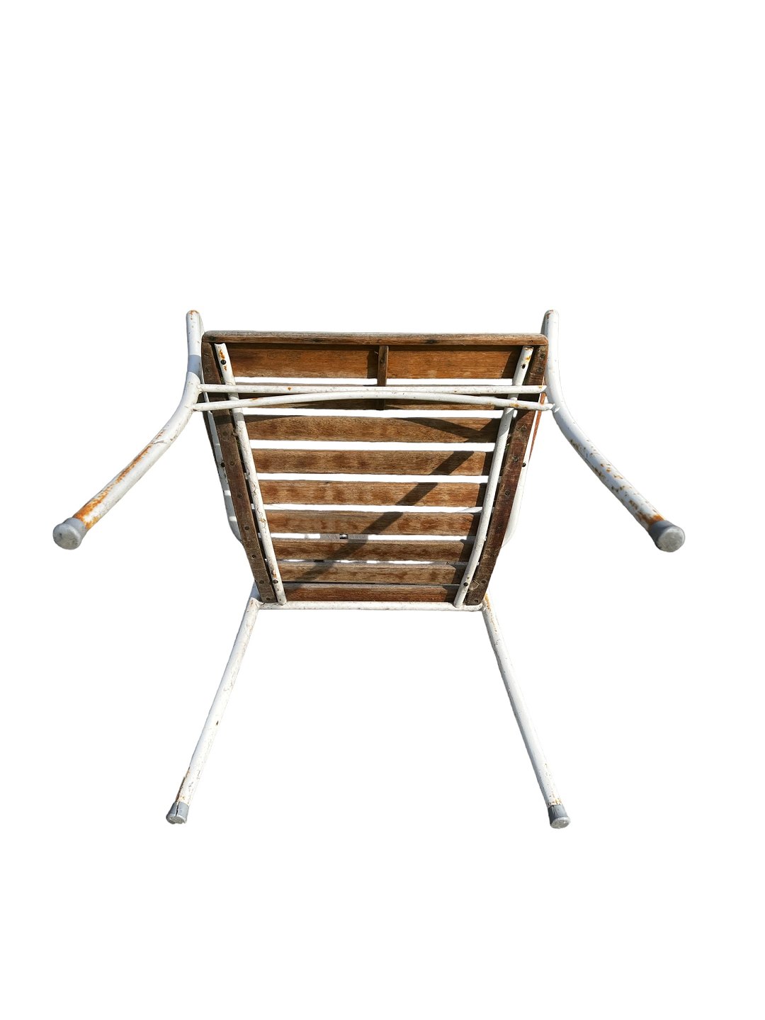 SoldAn original set of four marguerite chairs and table in bleached teak wood and metal from around the 1950s. In fine original condition.