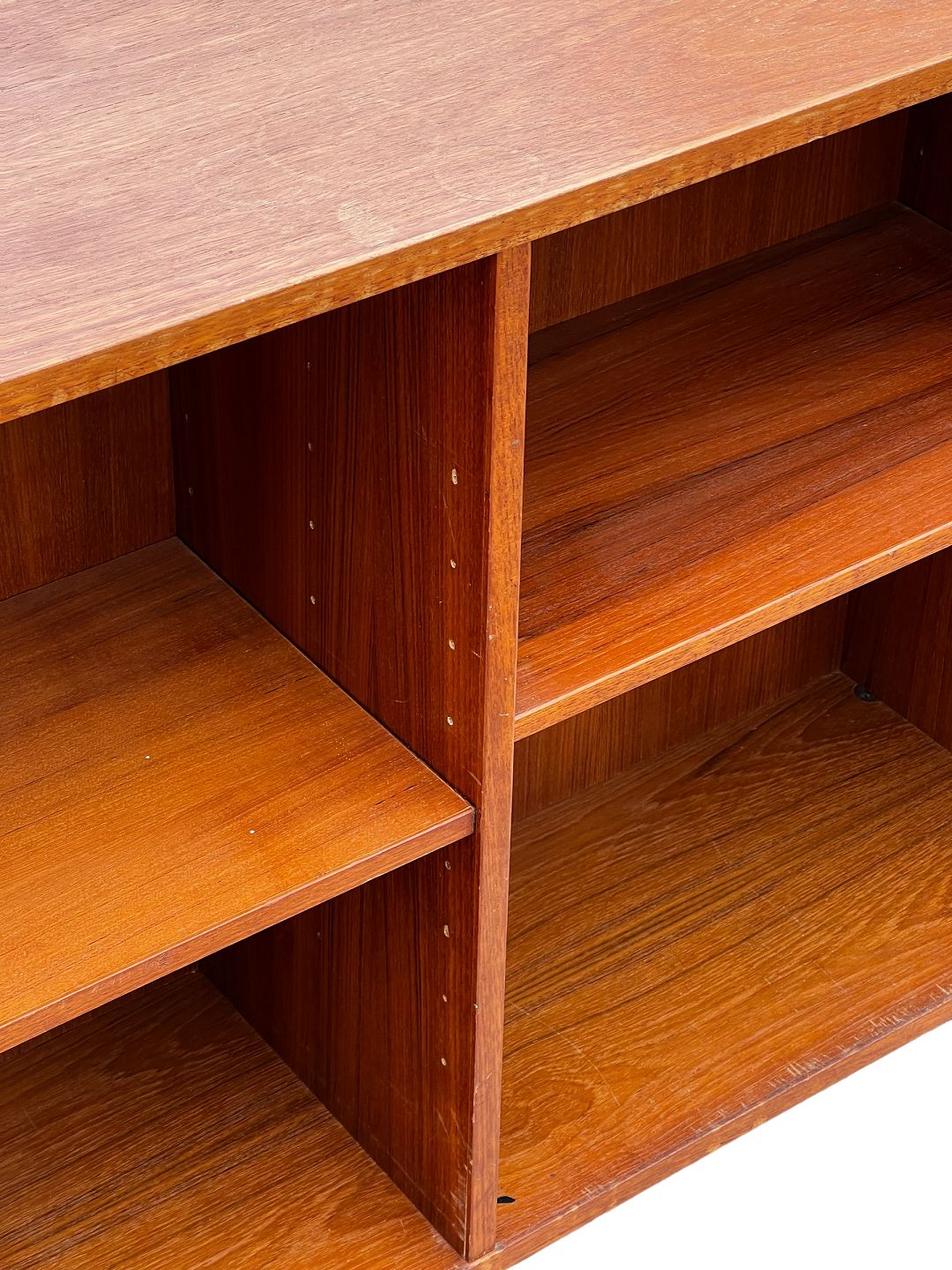 The warm colors and natural beauty of the teak add character to any room, while the slim metal legs give a light and airy look. With its timeless appeal, this bookcase will be an impressive and functional piece of furniture that will fit perfectly into any home.