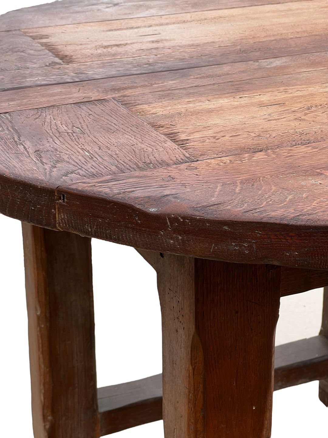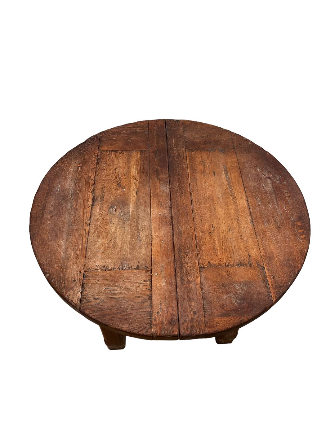 Round dining table in patinated oak, originally from Denmark around the 1940s. In beautiful original condition.