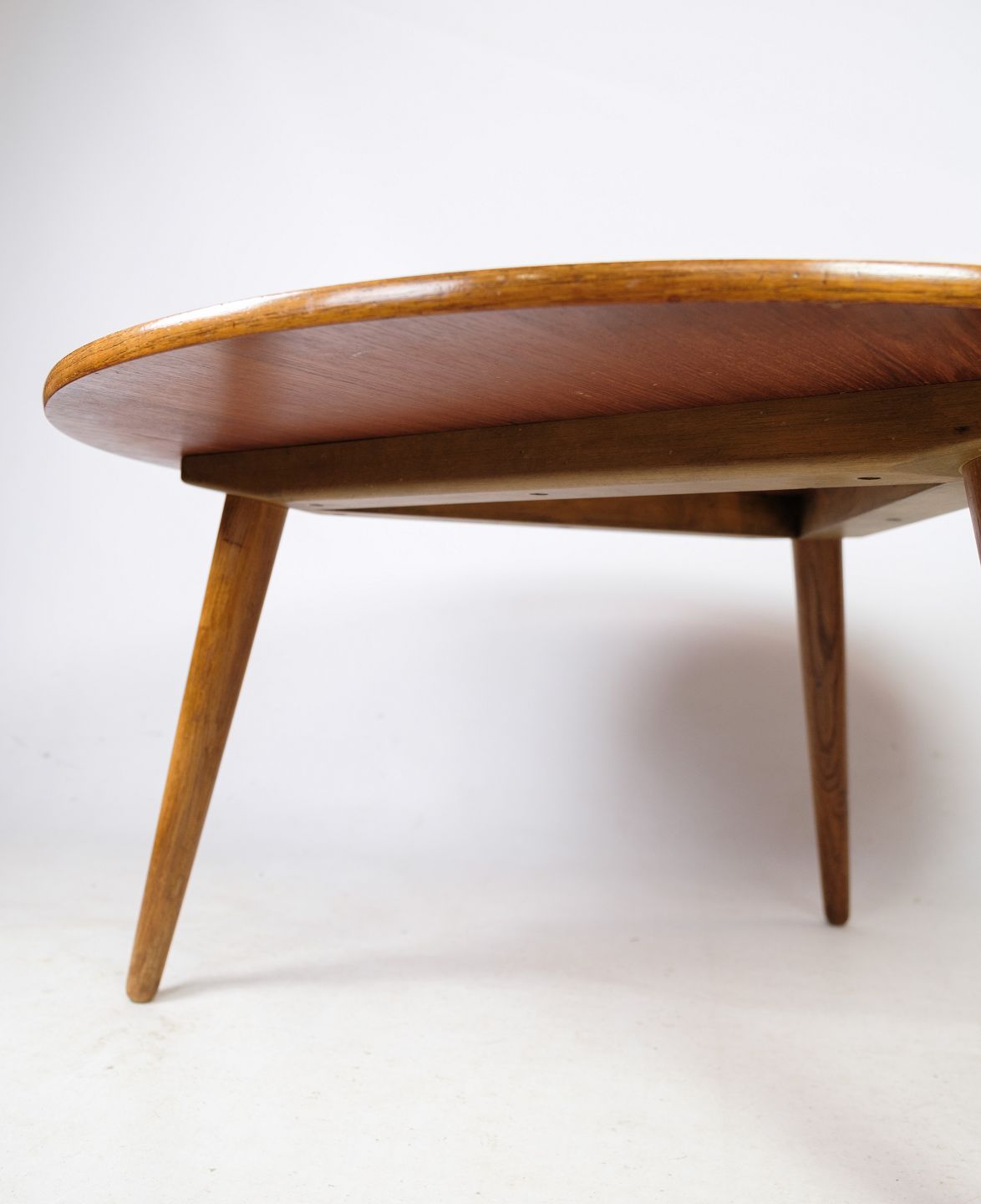 Som en tidlig model i sin originale stand er dette sofabord et sjældent fund og meget eftertragtet af samlere og designentusiaster. Dens enkle, men elegante design og håndværk af høj kvalitet gør den til et klassisk eksempel på Hans J. Wegners ikoniske moderne stil fra midten af århundredet.