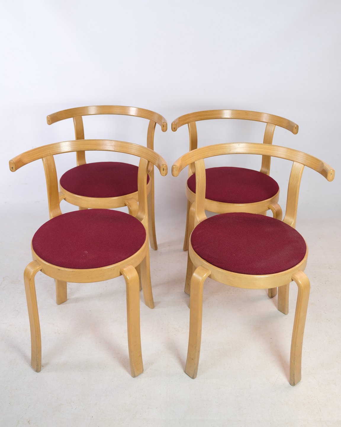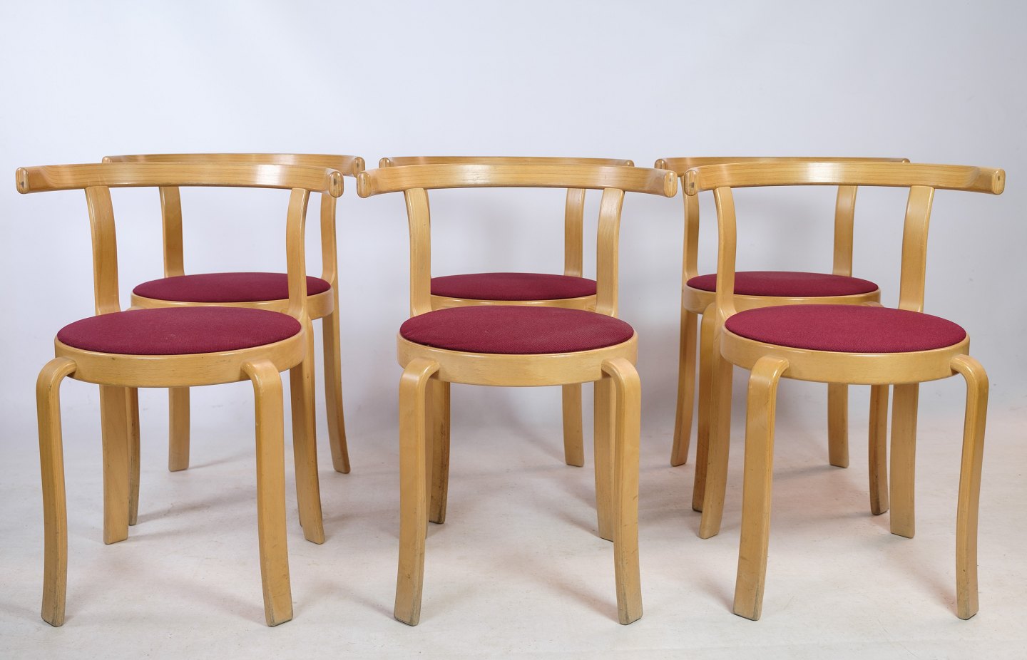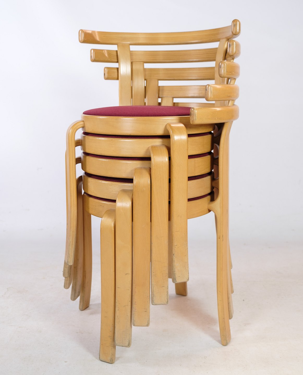 SoldSet of 4/6/8/10/12 chairs, model 8000 Series, designed by Rud Thygesen & Johnny Sørensen in beech wood with red fabric made by Magnus Olesen. The chairs have been produced by Magnus Olesen since 1981