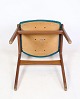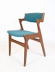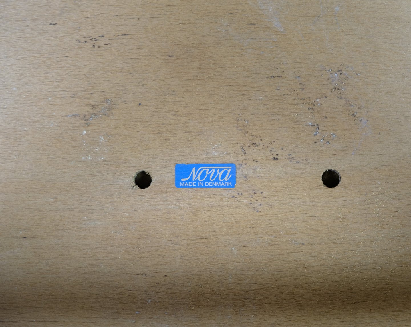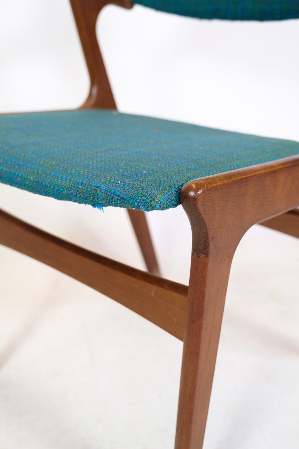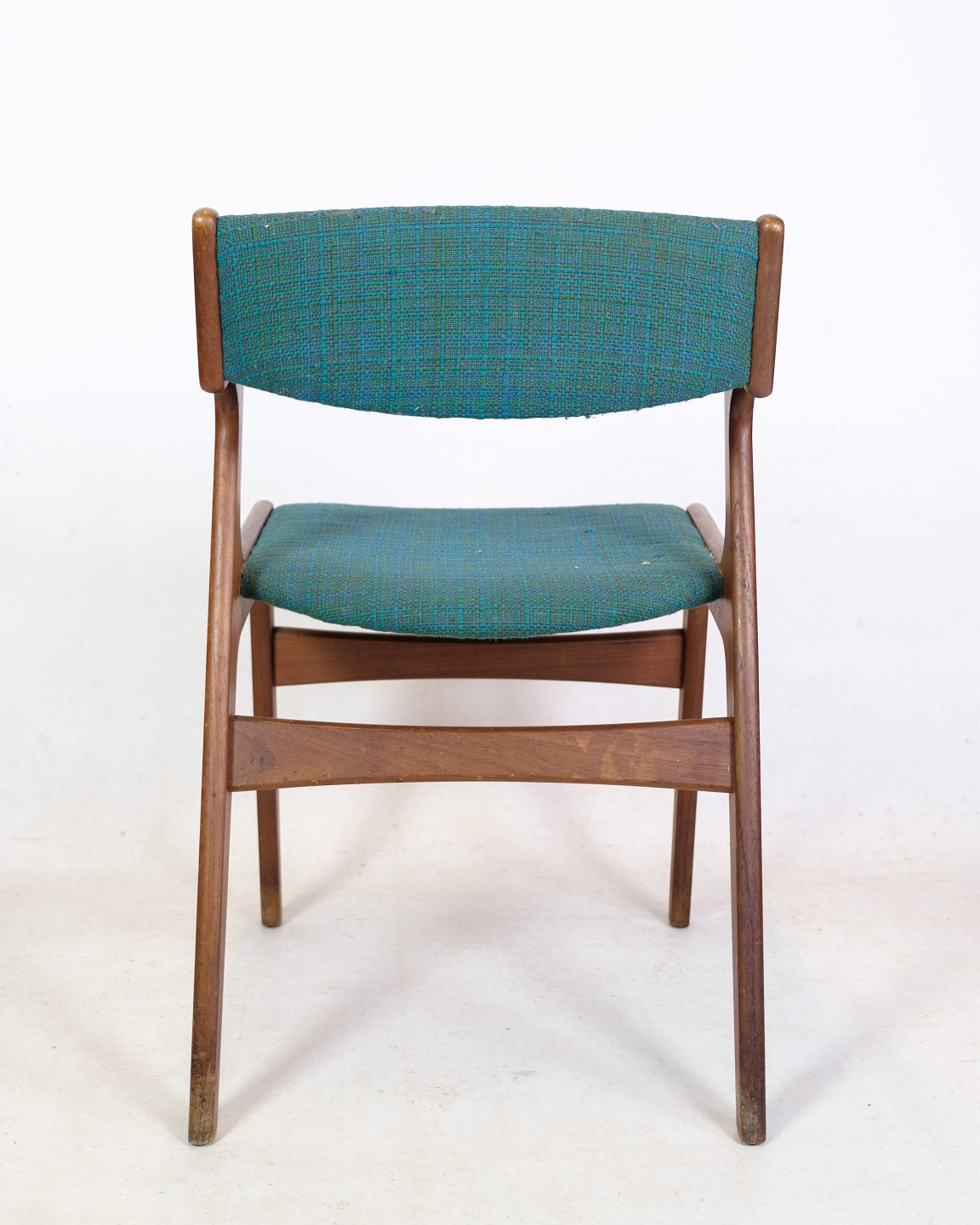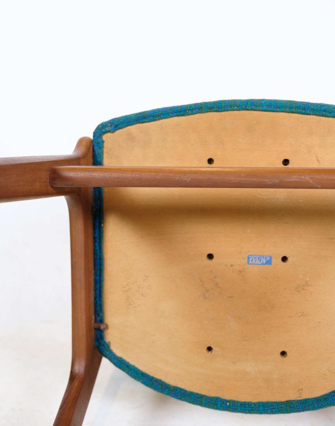 Set of four dining chairs in teak and light blue fabric of Danish design and manufactured by Nova Møbelfabrik in the 1960s. The chairs are in nice used condition.