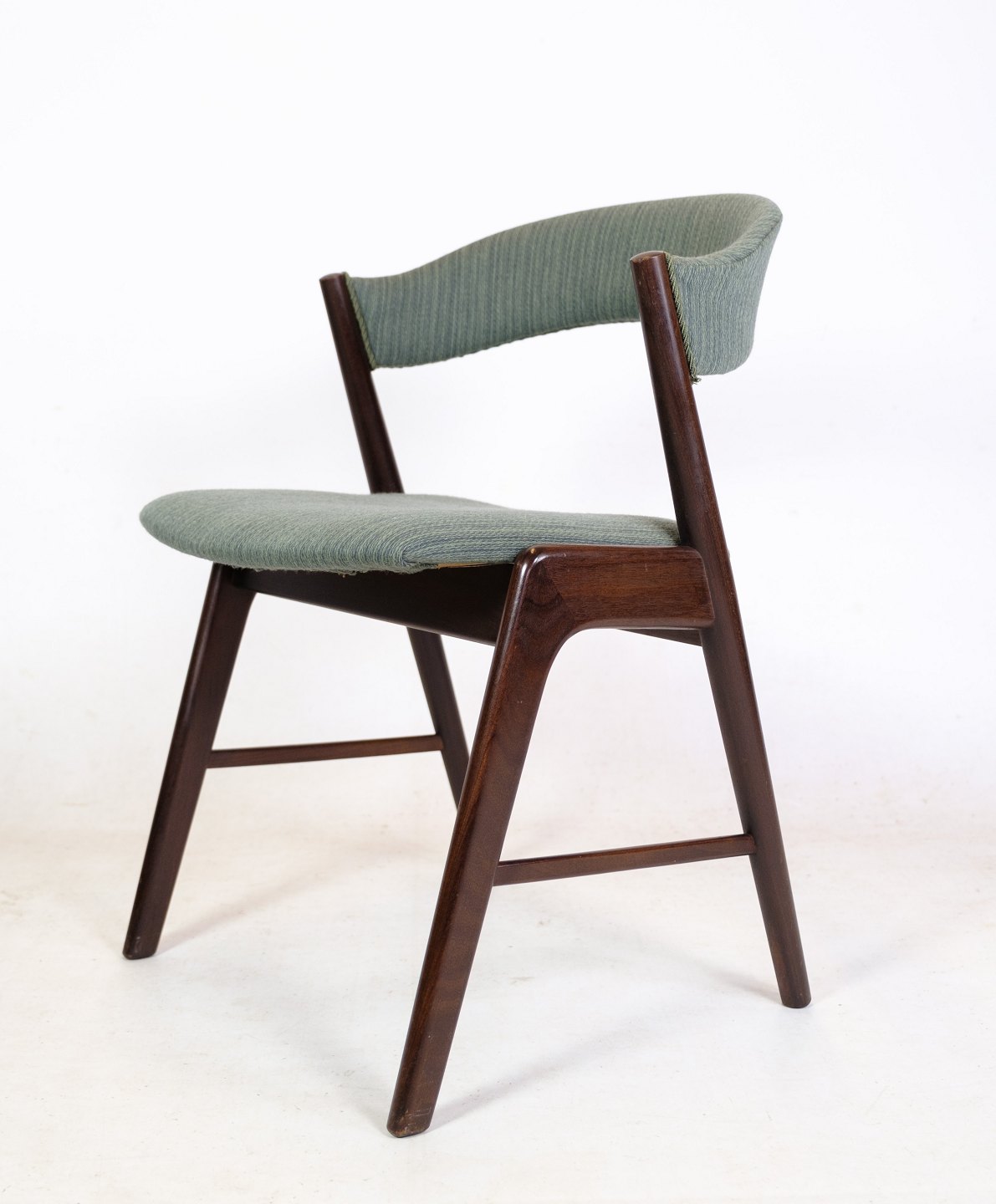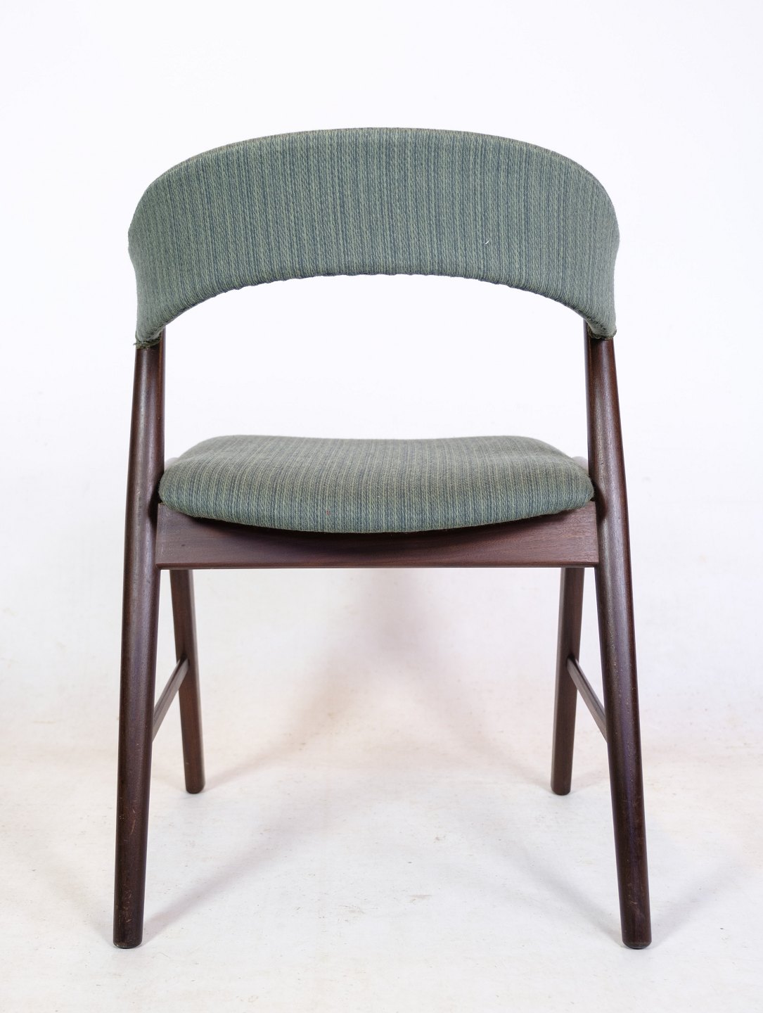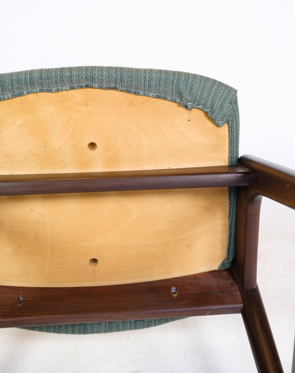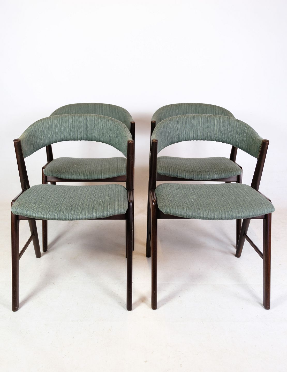 Set of 4 armchairs in teak wood, of Danish design from around the 1960s. The chairs are in nice blue fabric in very good condition.