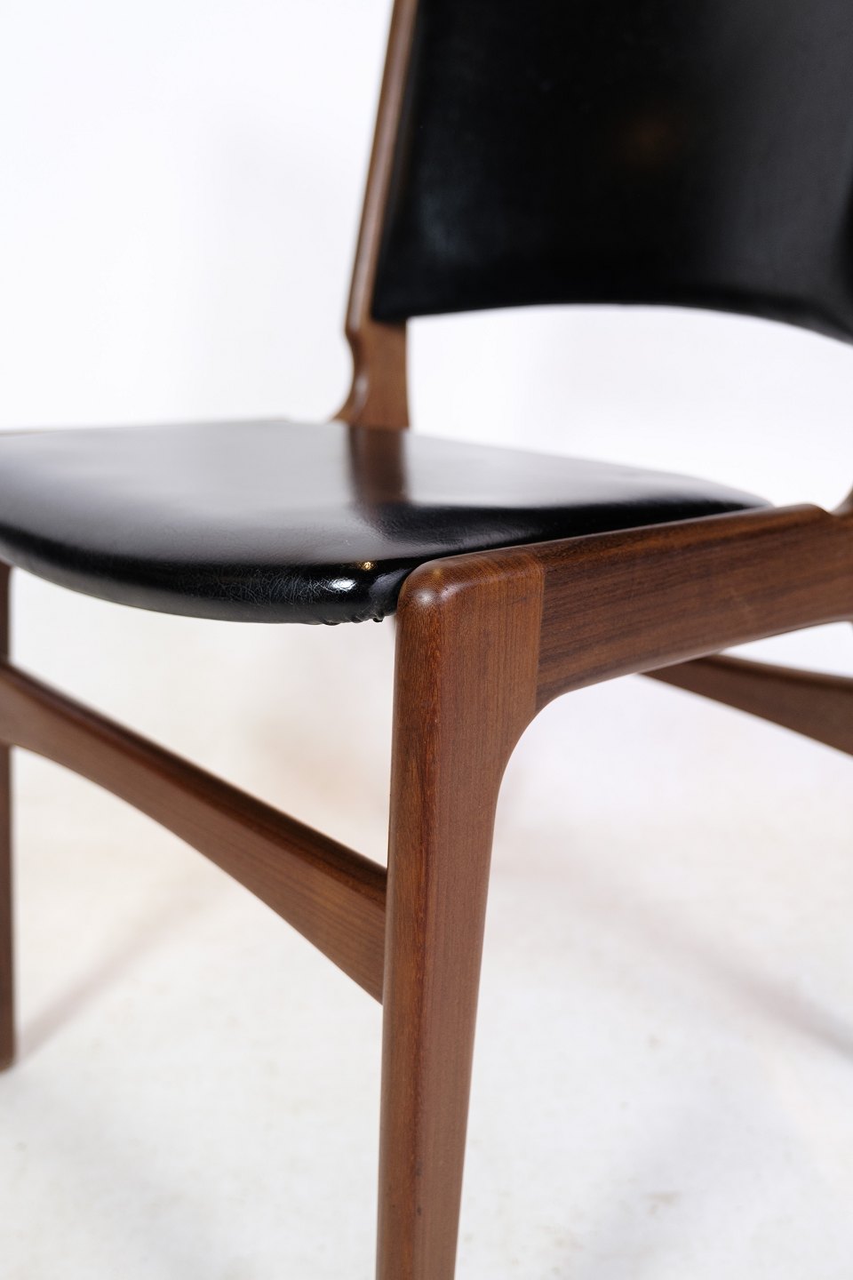 Sæt af 2 stole, designet af Erik Buch model 89 fremstillet af Anderstrup Møbelfabrik i teaktræ i sort læder omkring 1960'erne.